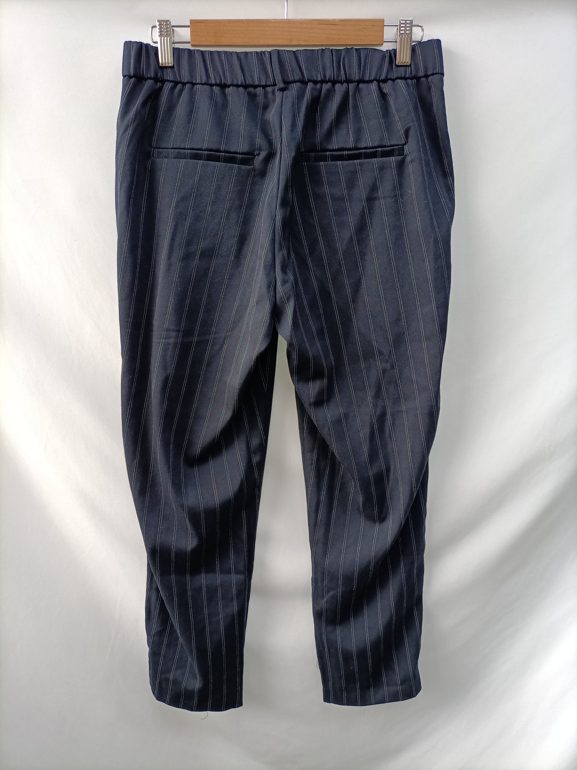 Pantalón estilo jogger azules con rayas grises y cintura elástica