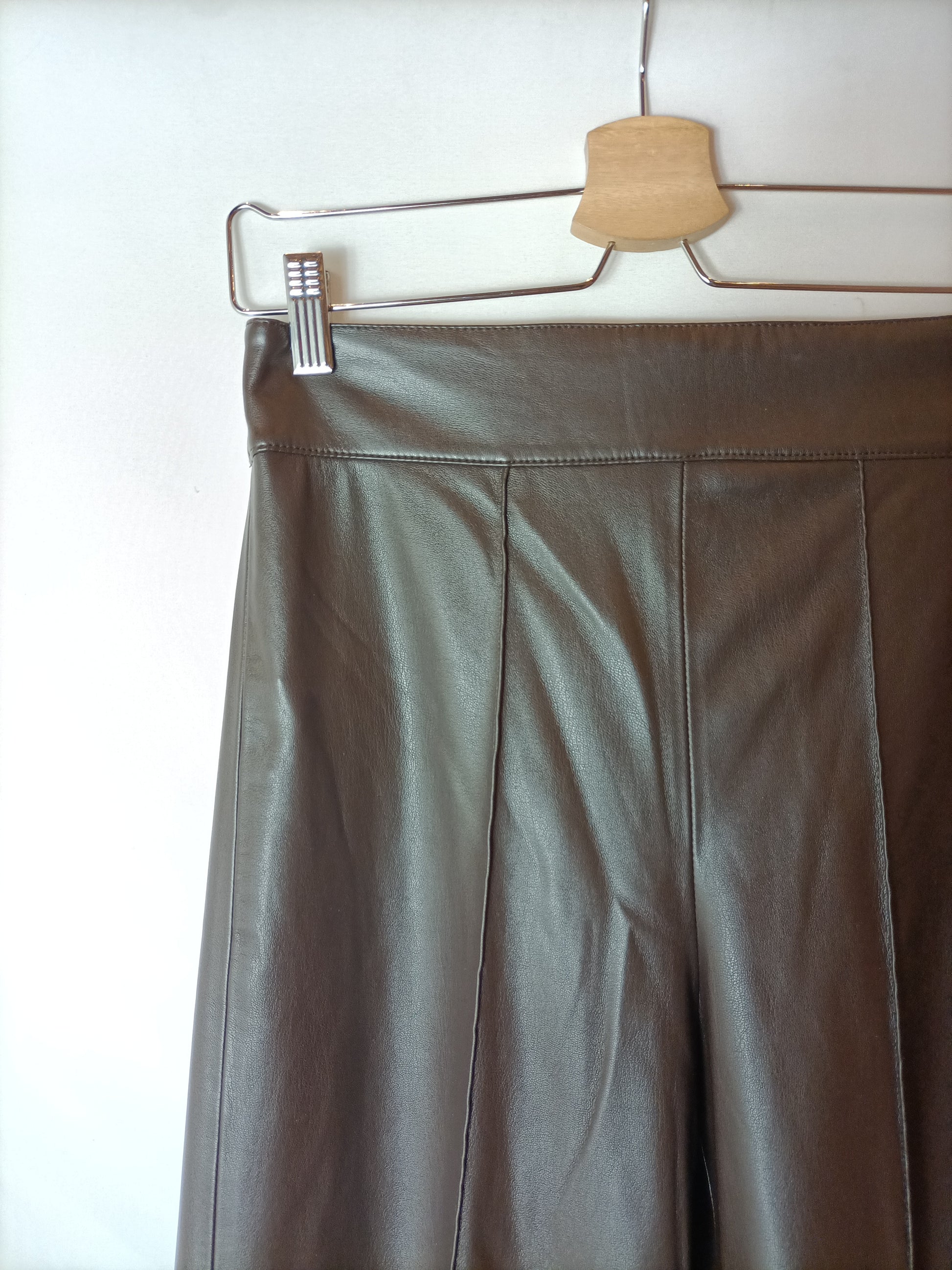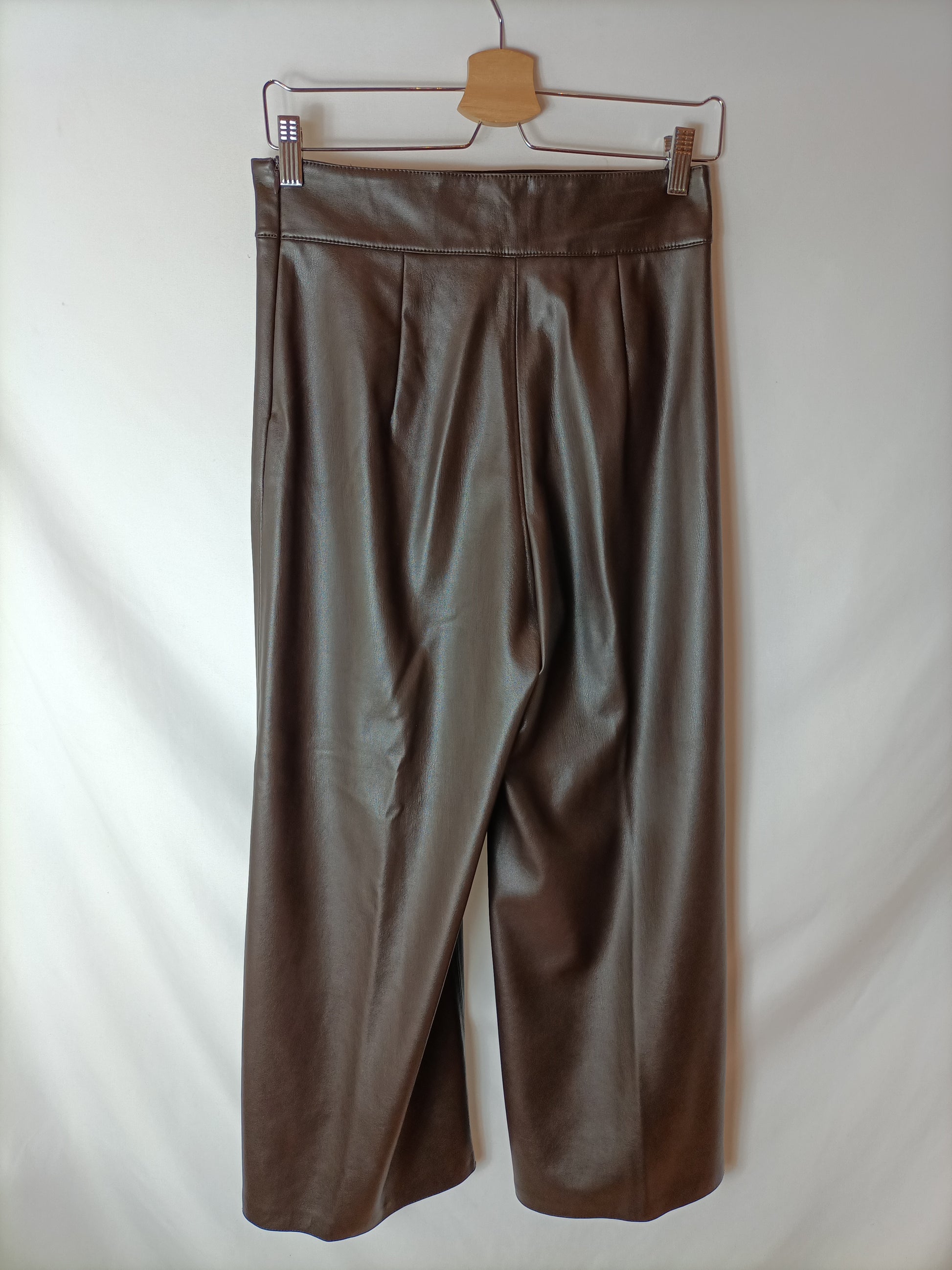 Pantalón culotte marrón de polipiel. Semielástico. Cintura 36 cm