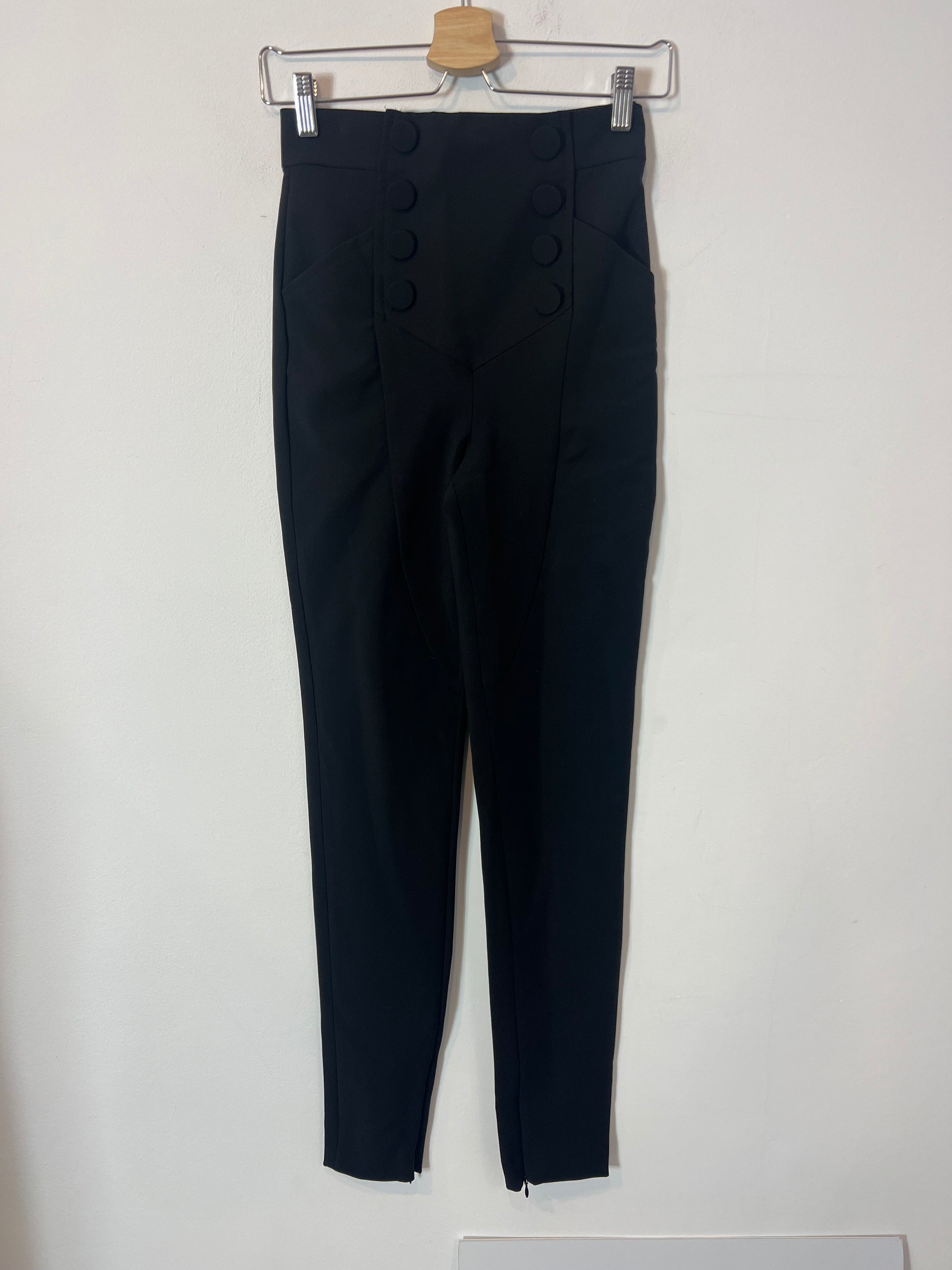 Pantalón negro estilo leggins con botones en la cintura . Largo 106cm