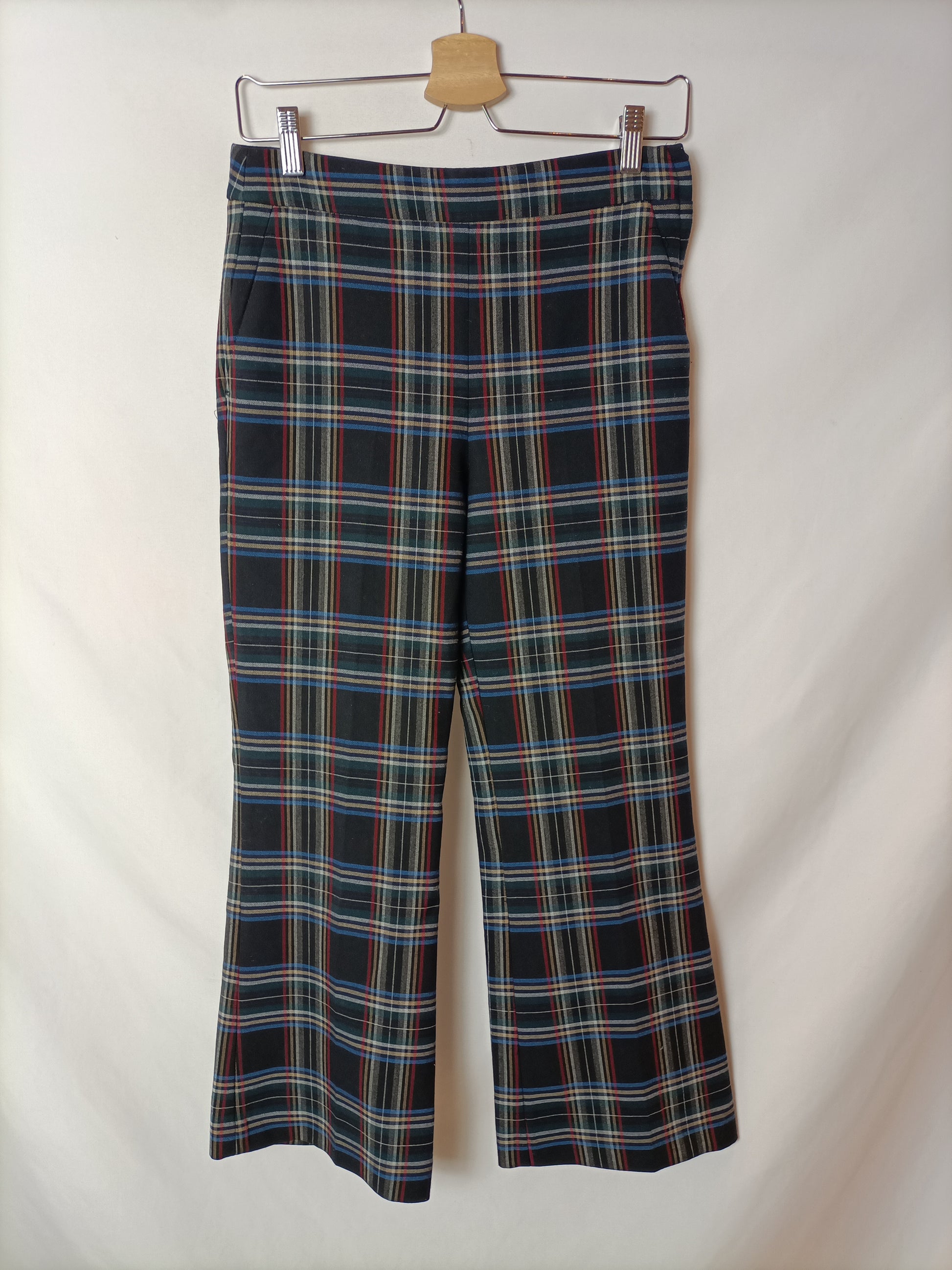 pantalón negro de cuadros ligeramente acampanado. cintura 36 largo 86 cm