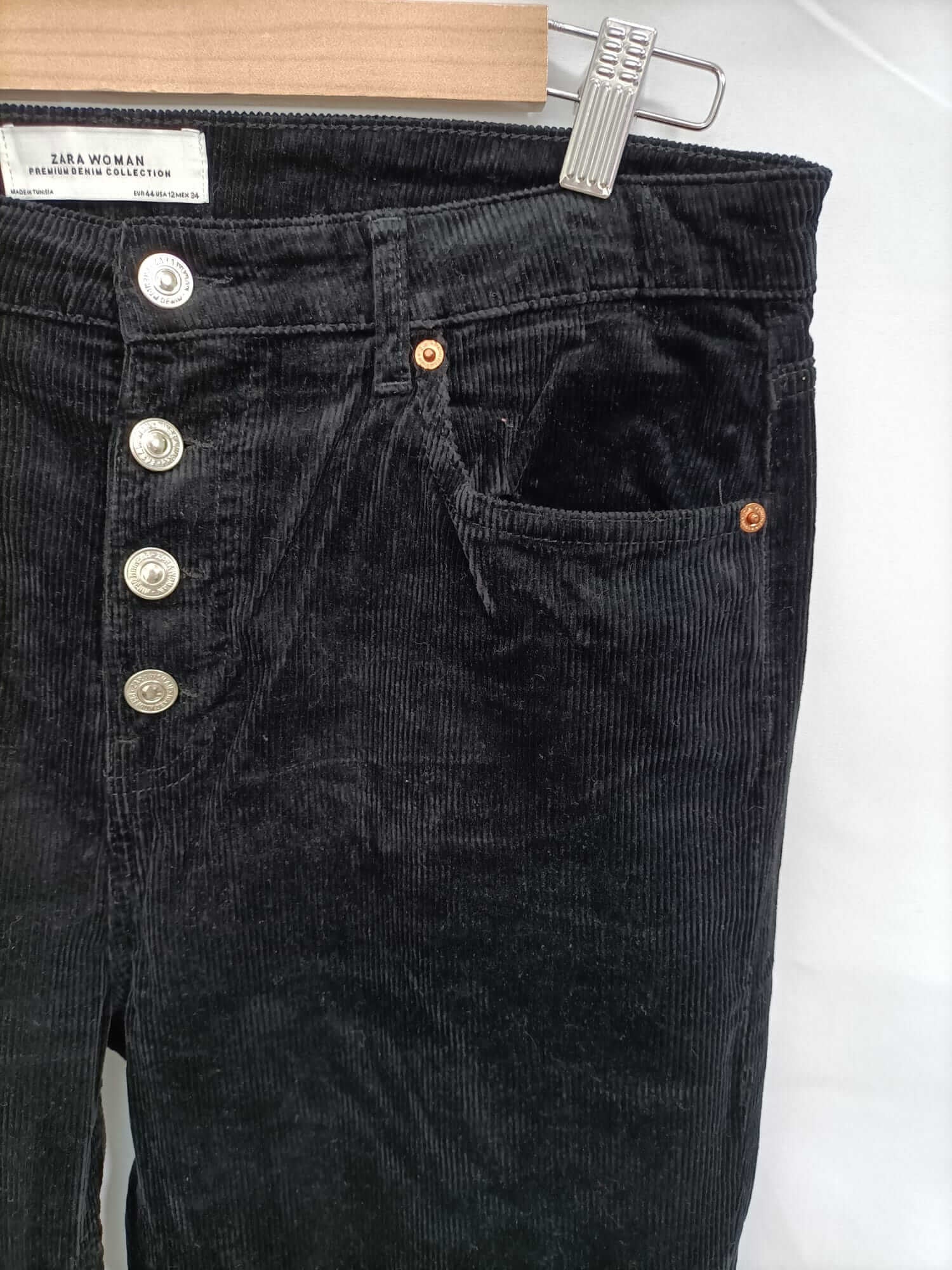 Zara. 44. Pantalón negro de pana con campana. Se abrocha con botones. No elástico. Cintura 44 cm largo 115 cm