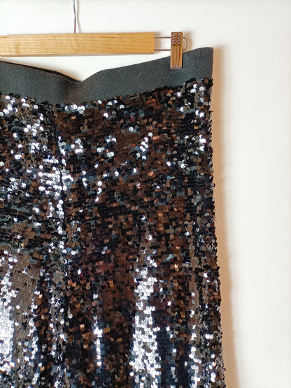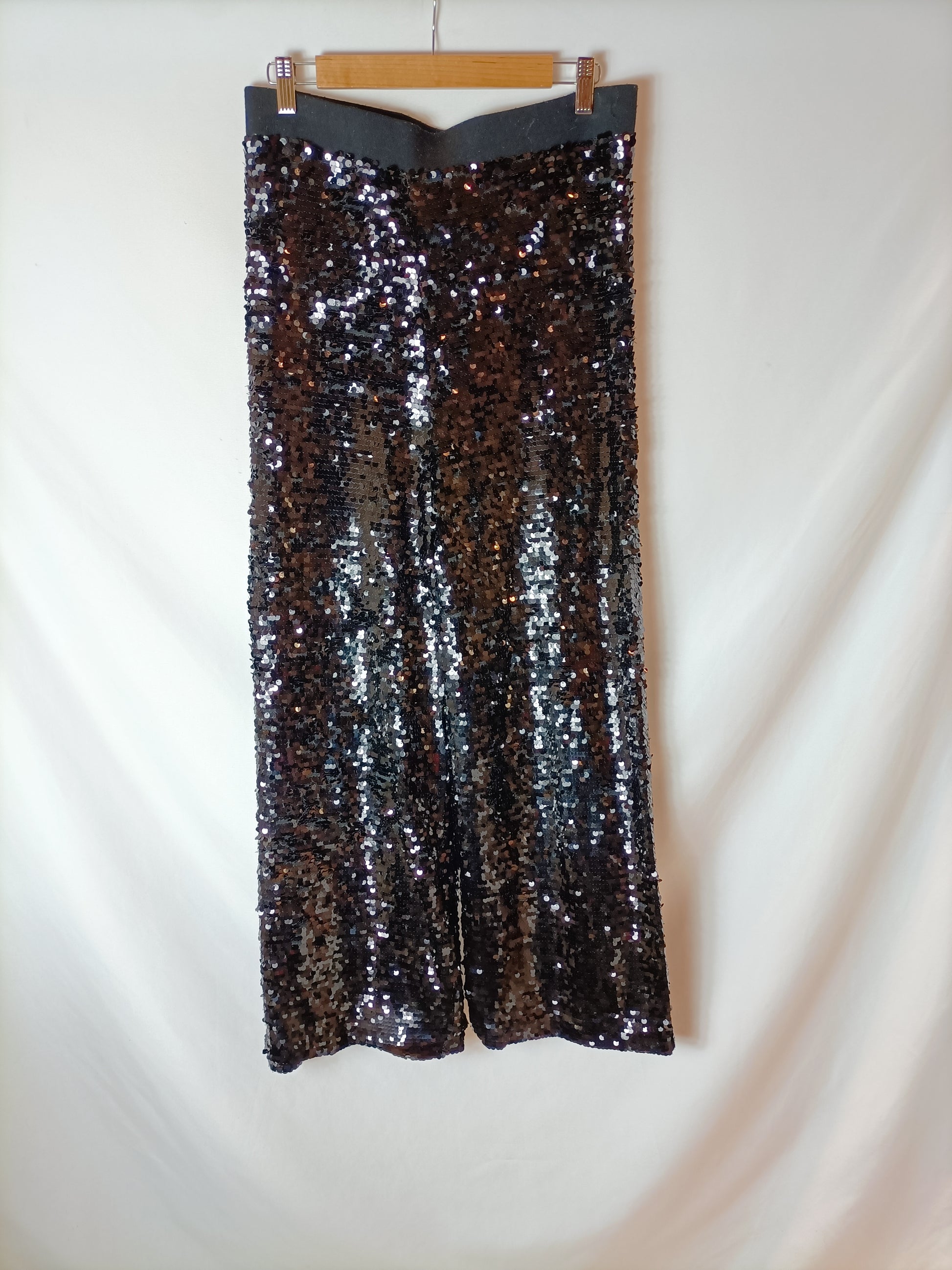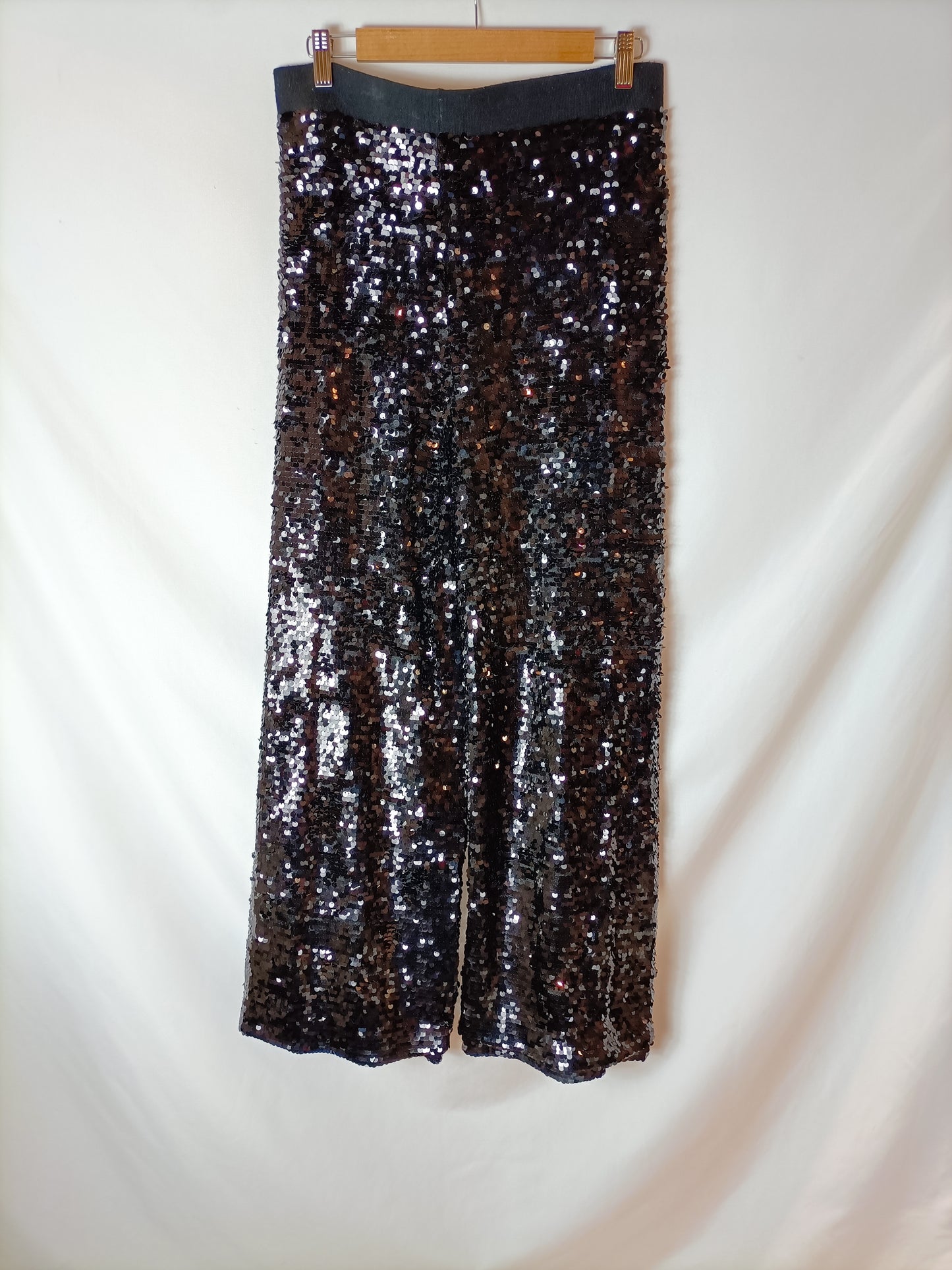 Pantalón largo de lentejuelas negro con cintura elástica de punto
