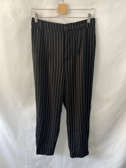 ZARA. Pantalón negro rayas blancas T.s
