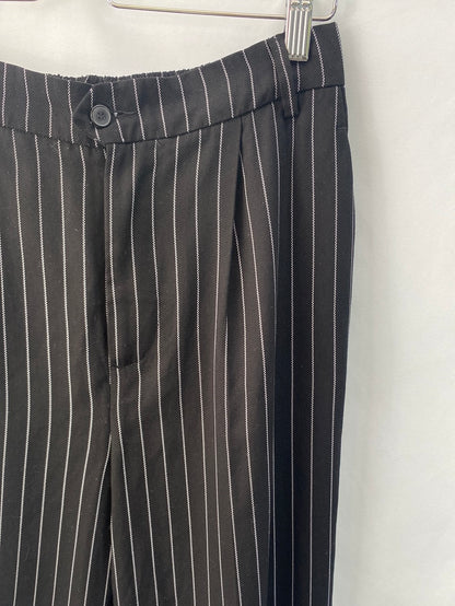 Pantalón ancho de vestir negro con rayas blancas. Fluido y con cintura elástica. Largo 90 cm