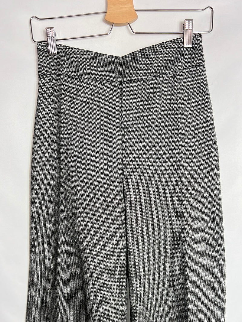 Pantalón pata ancha espiga gris. Tejido no elástico. Cintura 34 cm.largo desde la cintura 93cm