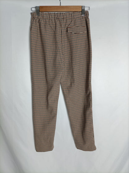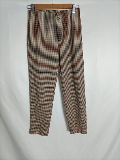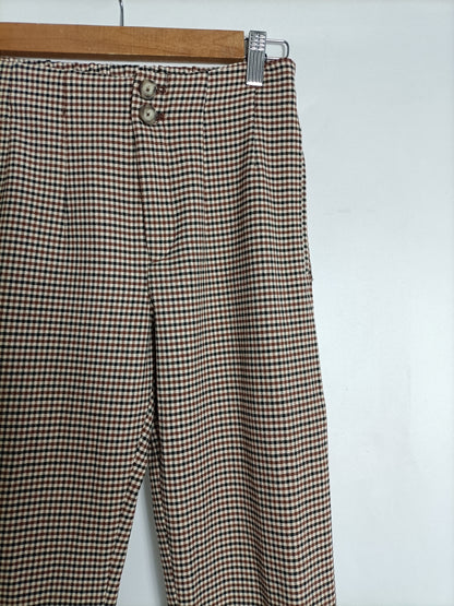 pantalón recto pata de gallo en tonos tierra. cintura 32 cm largo 87 cm. talla como una 32 de mujer