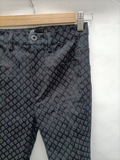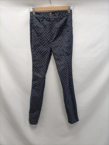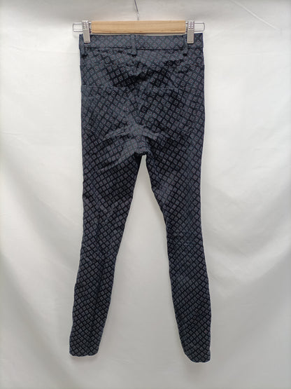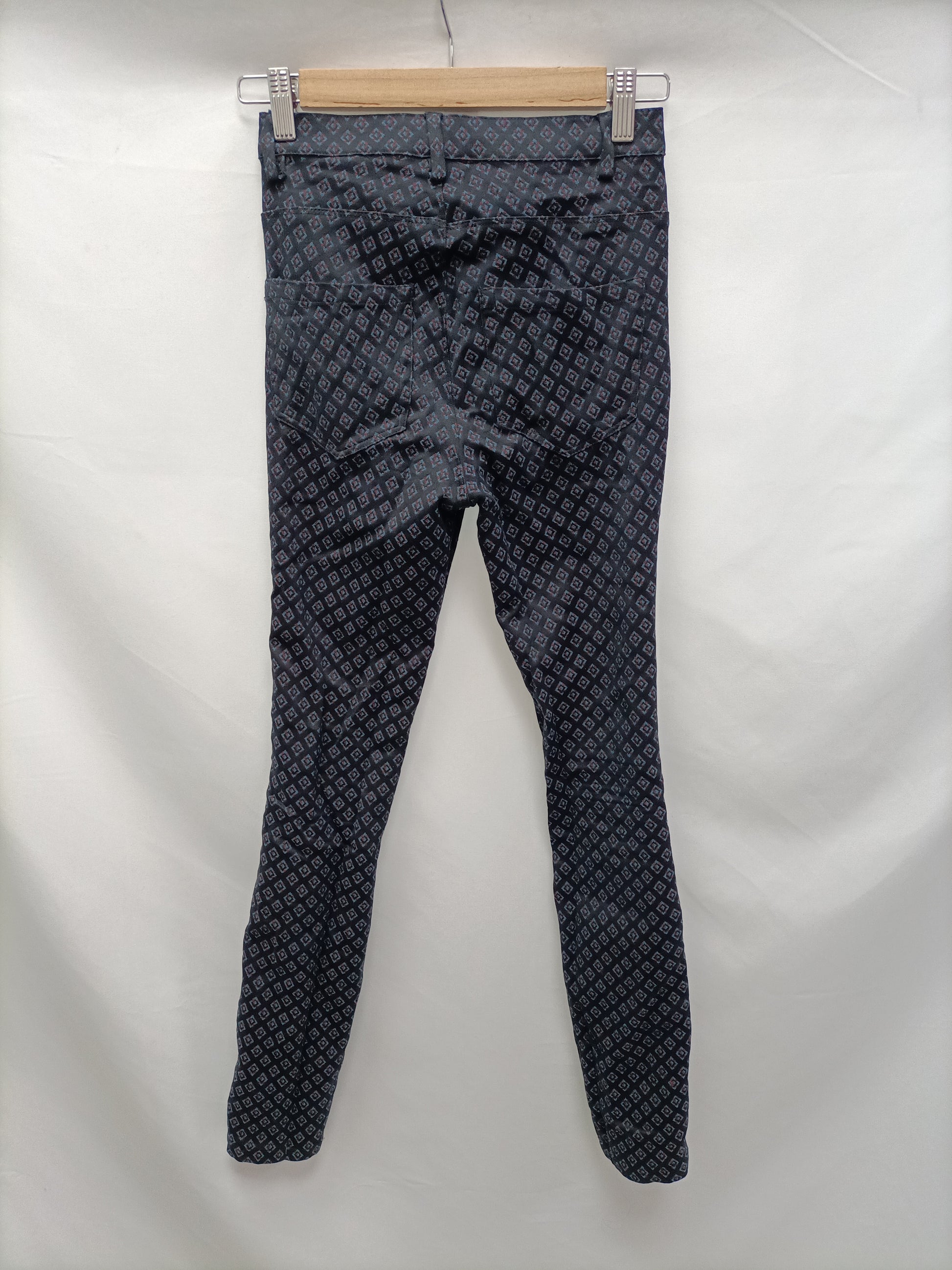 Pantalón pitillo negro con rombos en azul y burdeos, son semielásticos