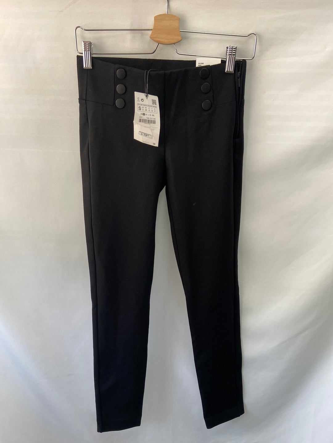 NUEVO CON ETIQUETA.Pantalón pitillo tipo leggings negro con botones delantero de adorno. Se abrocha con cremallera lateral.