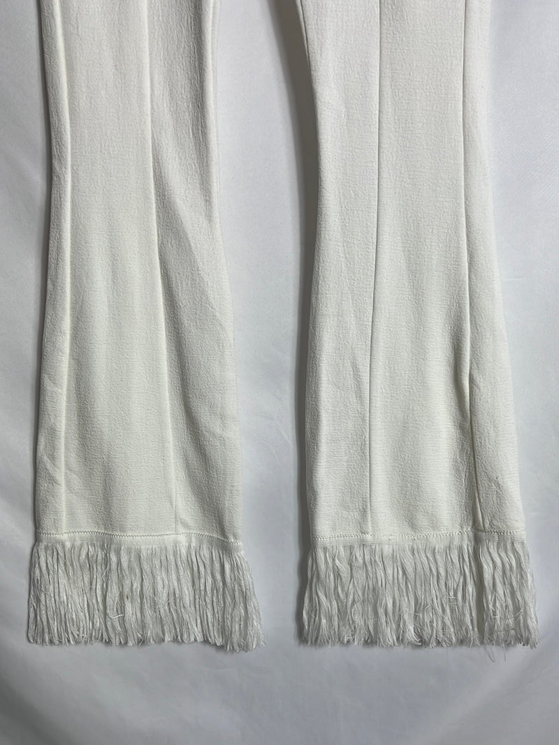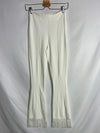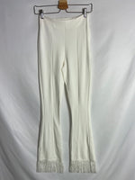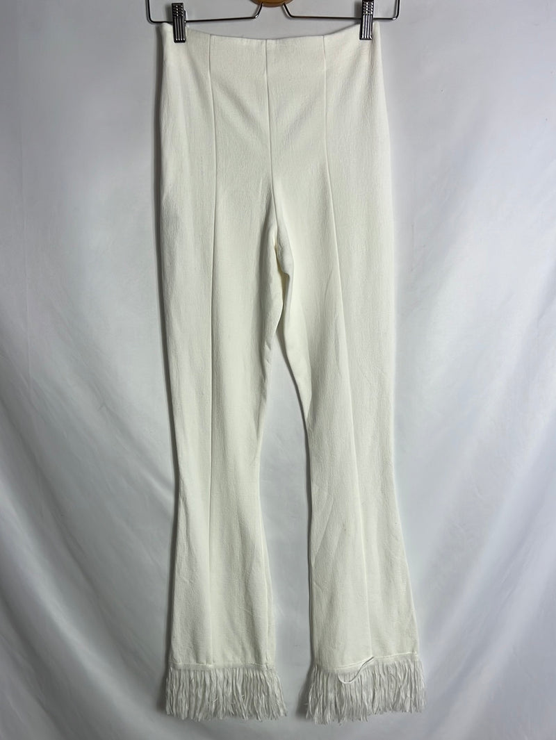 Pantalón textura blanco flecos. Tejido elástico. Cremallera lateral