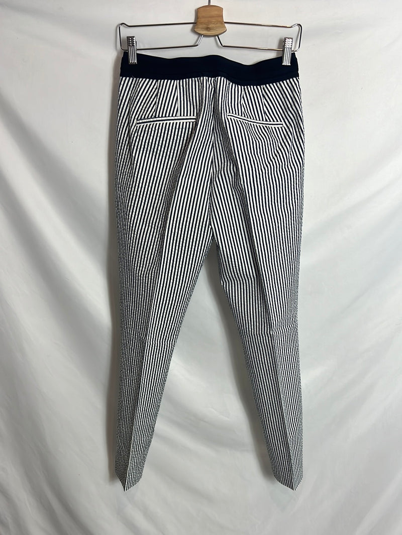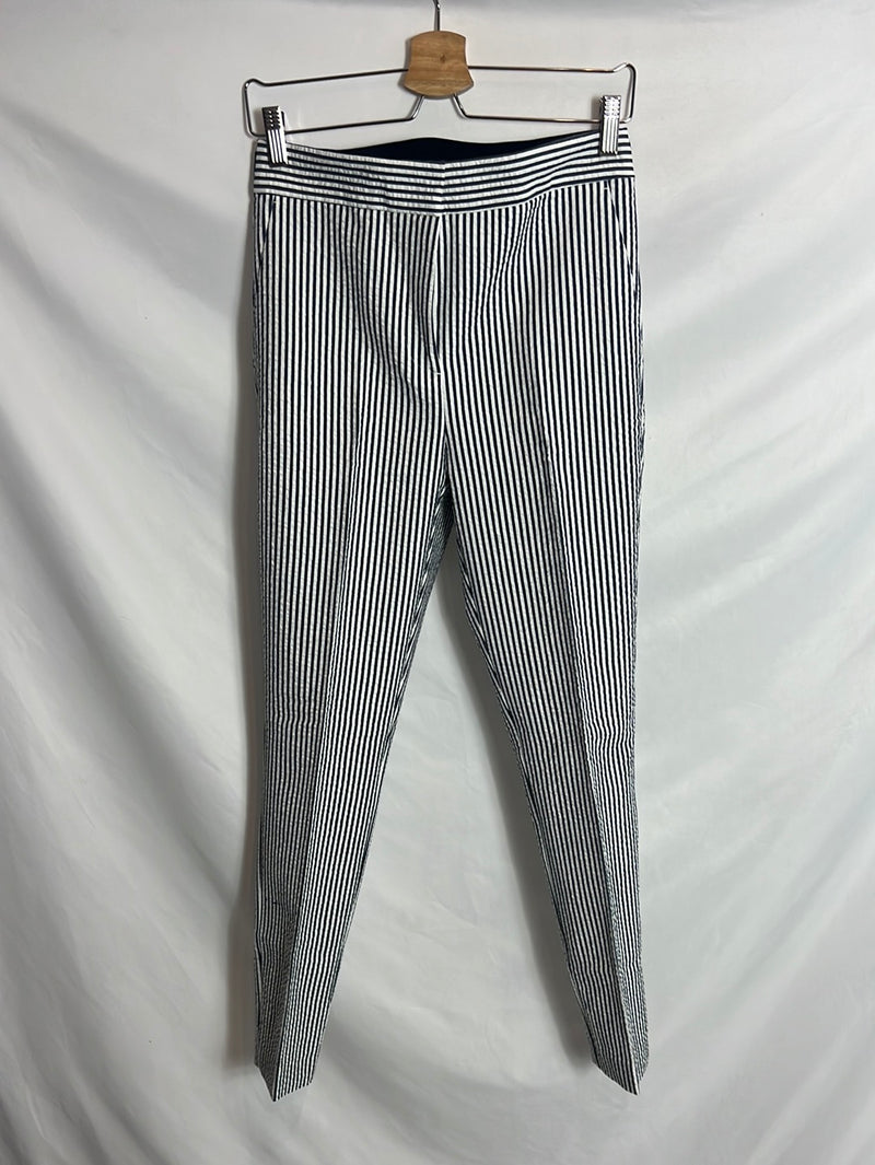 ZARA. Pantalón textura rayas azules y blancas. T M