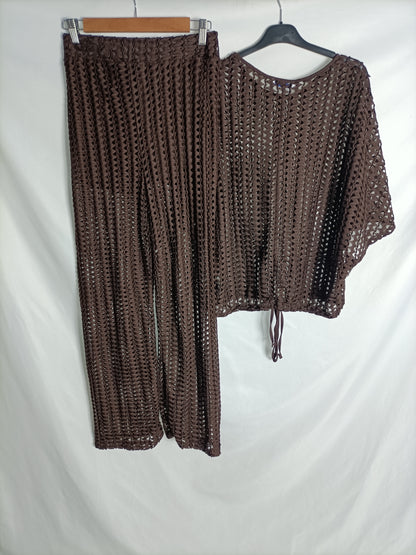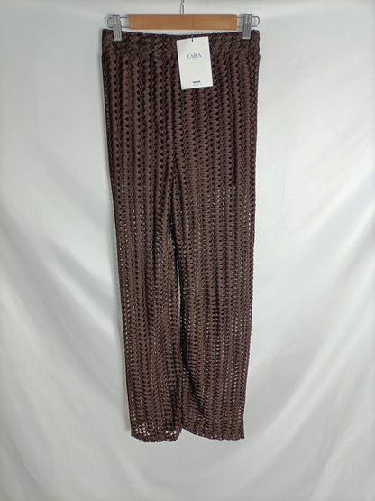 ZARA. Pantalón troquelado marrón T.s