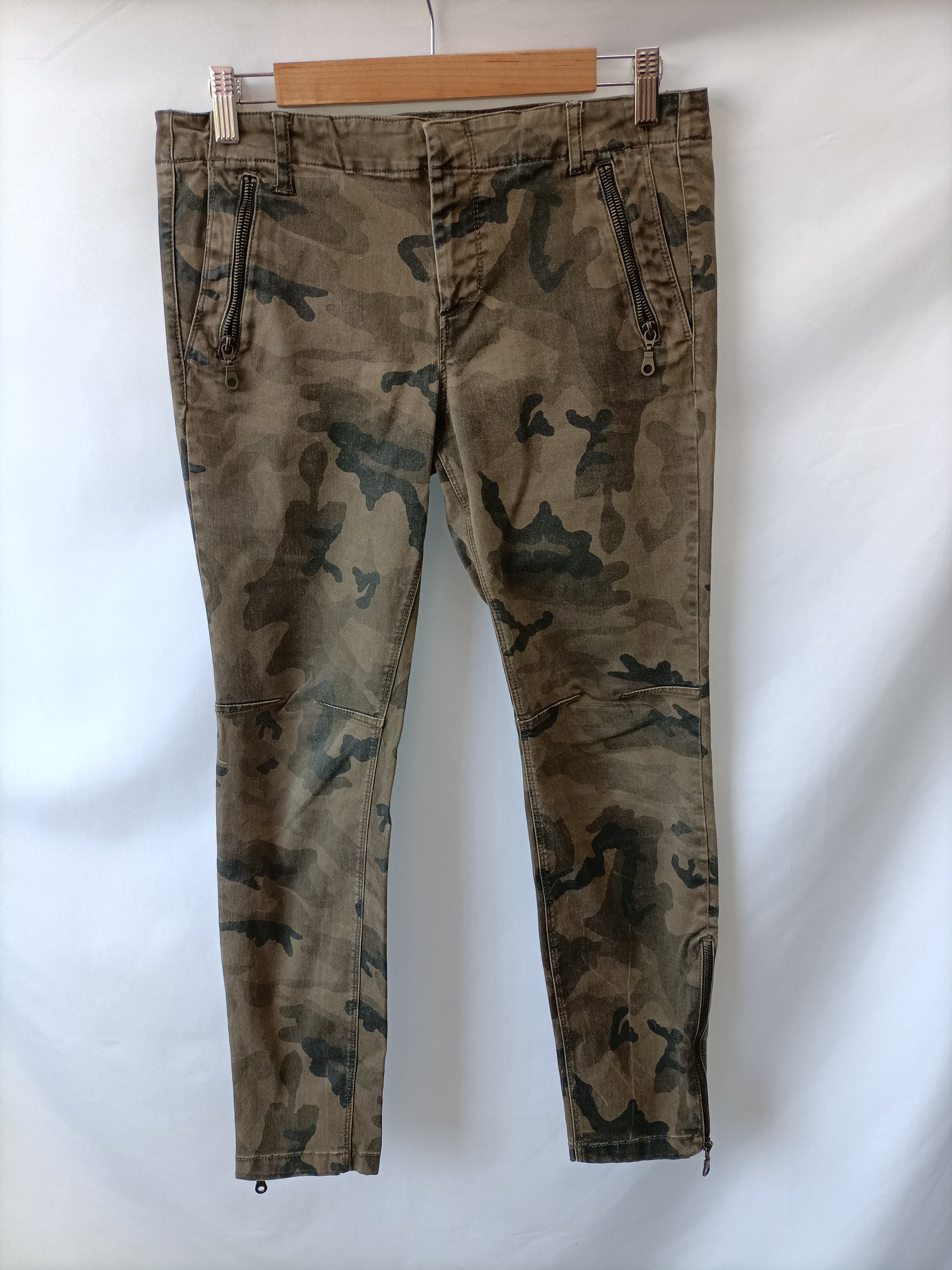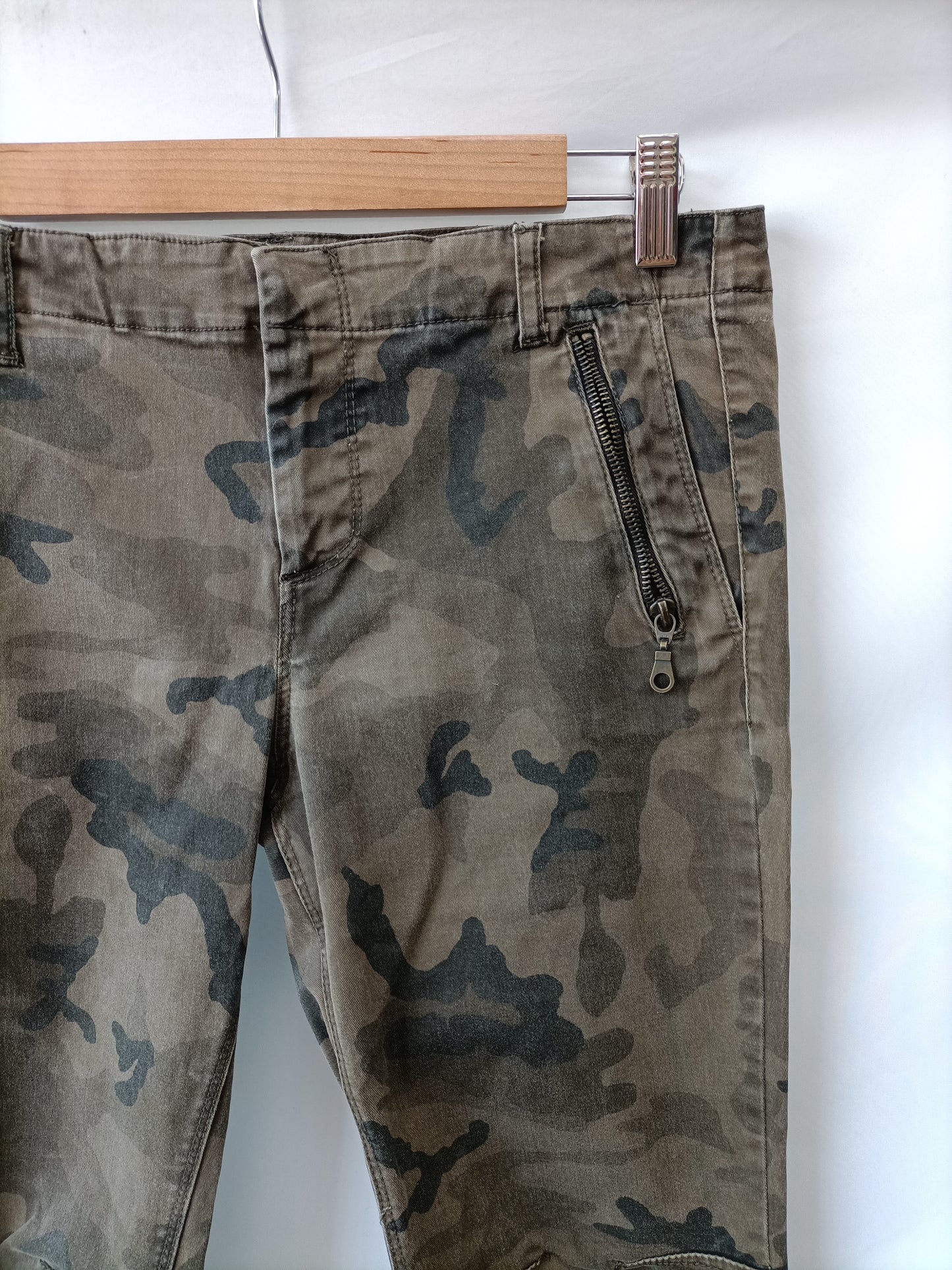 Zara. Pantalón tejido denim de camuflaje. Detalle de cremallera en los tobillos. No elástico. Cintura 40 cm largo 91 cm