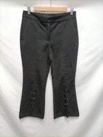 Pantalones de pinzas negros con detalles plateados en la parte de abajo. Un poco acampanados
