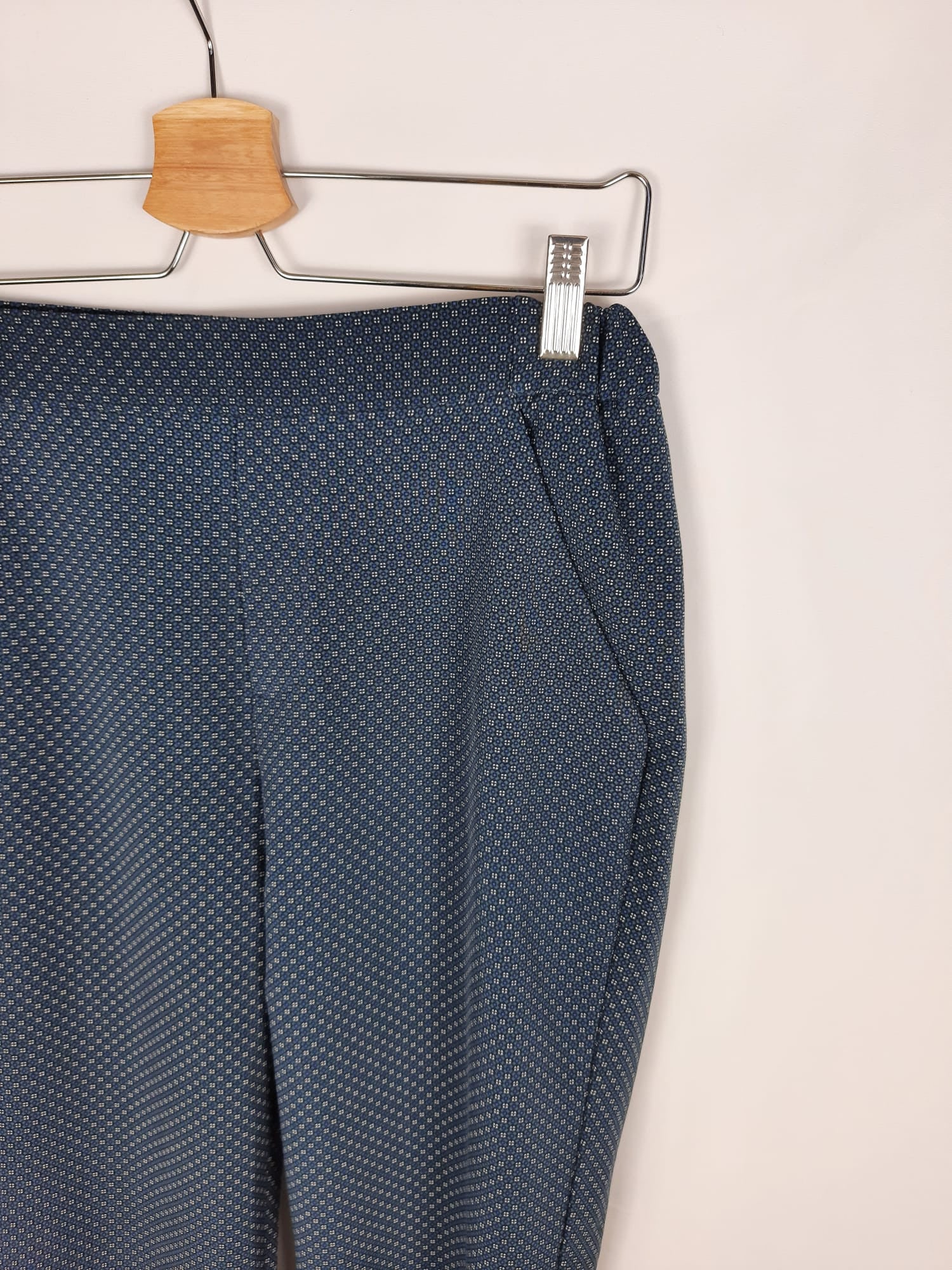 Zara. Pantalón fluido de florecitas en tonos azul, verde y blanco. Cintura elástica. Largo 90 cm