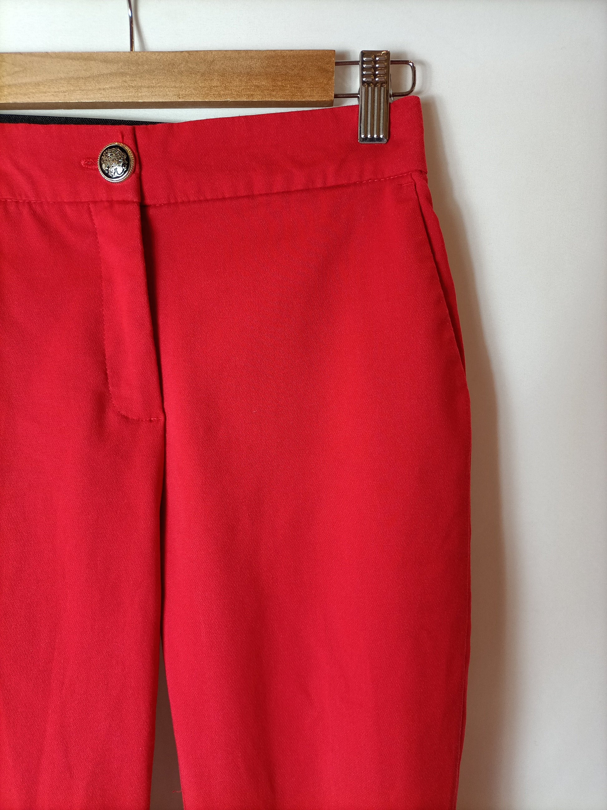 Pantalones elásticos rojos con detalle en la cintura. Bolsillos delanteros.