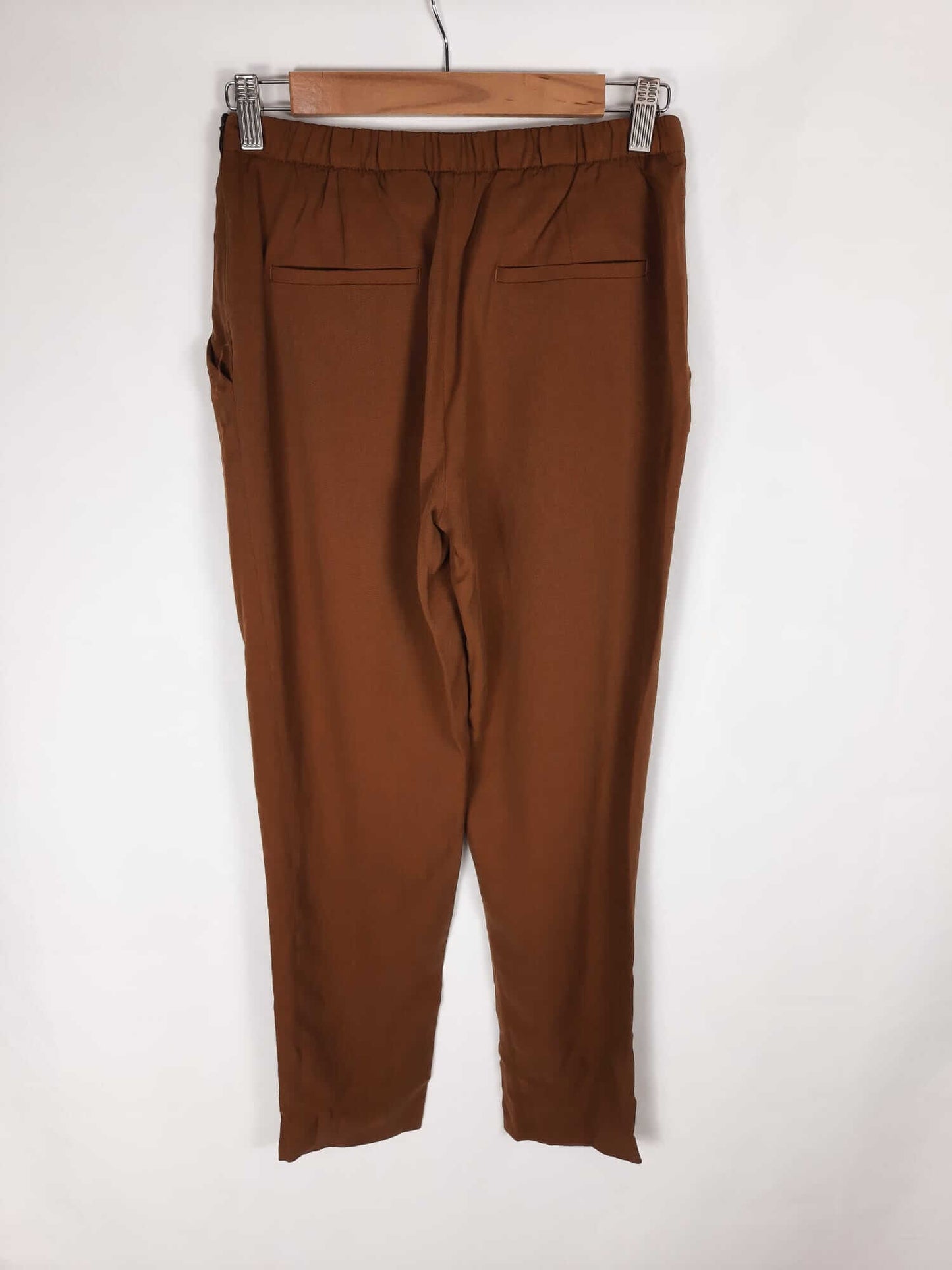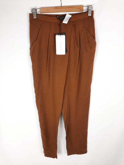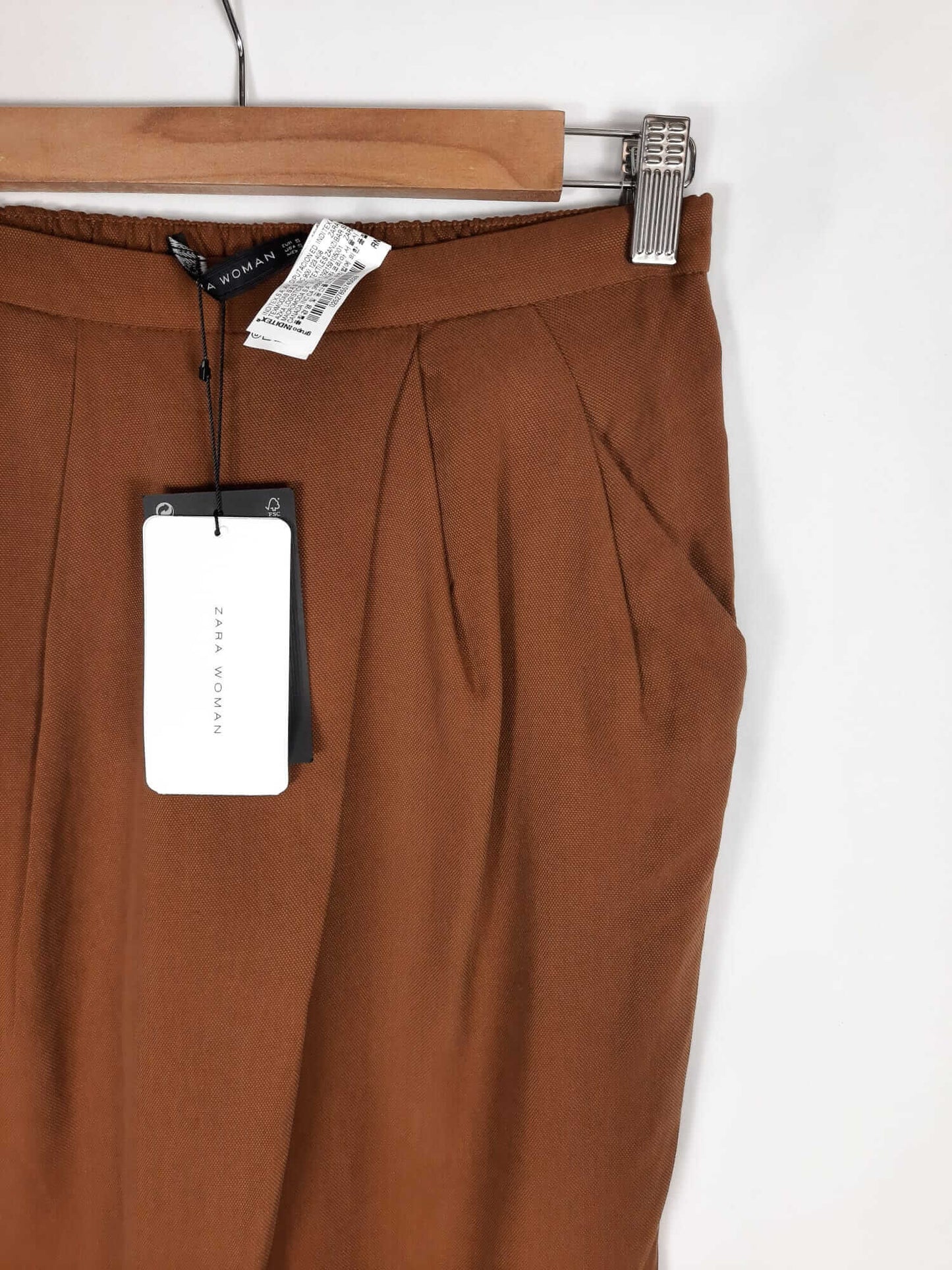 Zara. NUEVO CON ETIQUETA. Pantalón fluido marrón la parte delantera cruzada. Finito. Cintura elástica. Largo 97 cm