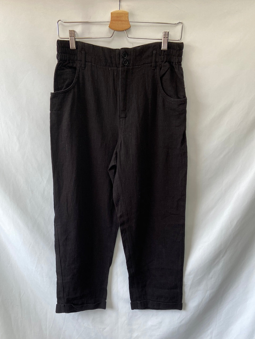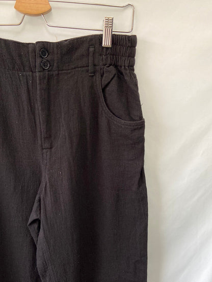 Pantalón ancho negro de lino con cintura elástica. Largo 93 cm