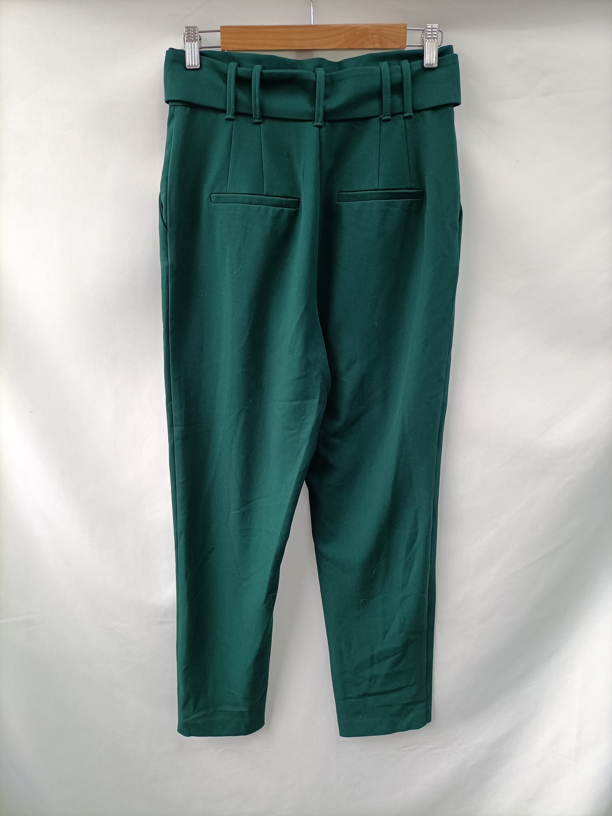 Pantalones verdes de vestir con cinturón incorporado, son alto de cintura y no elásticos . Cintura 36 cm