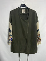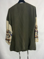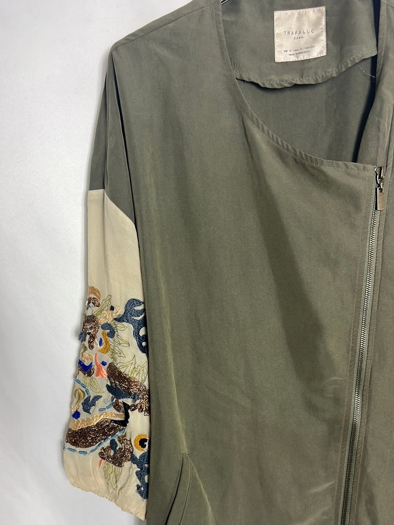 NUEVO CON ETIQUETA. Parka fina verde bordados mangas