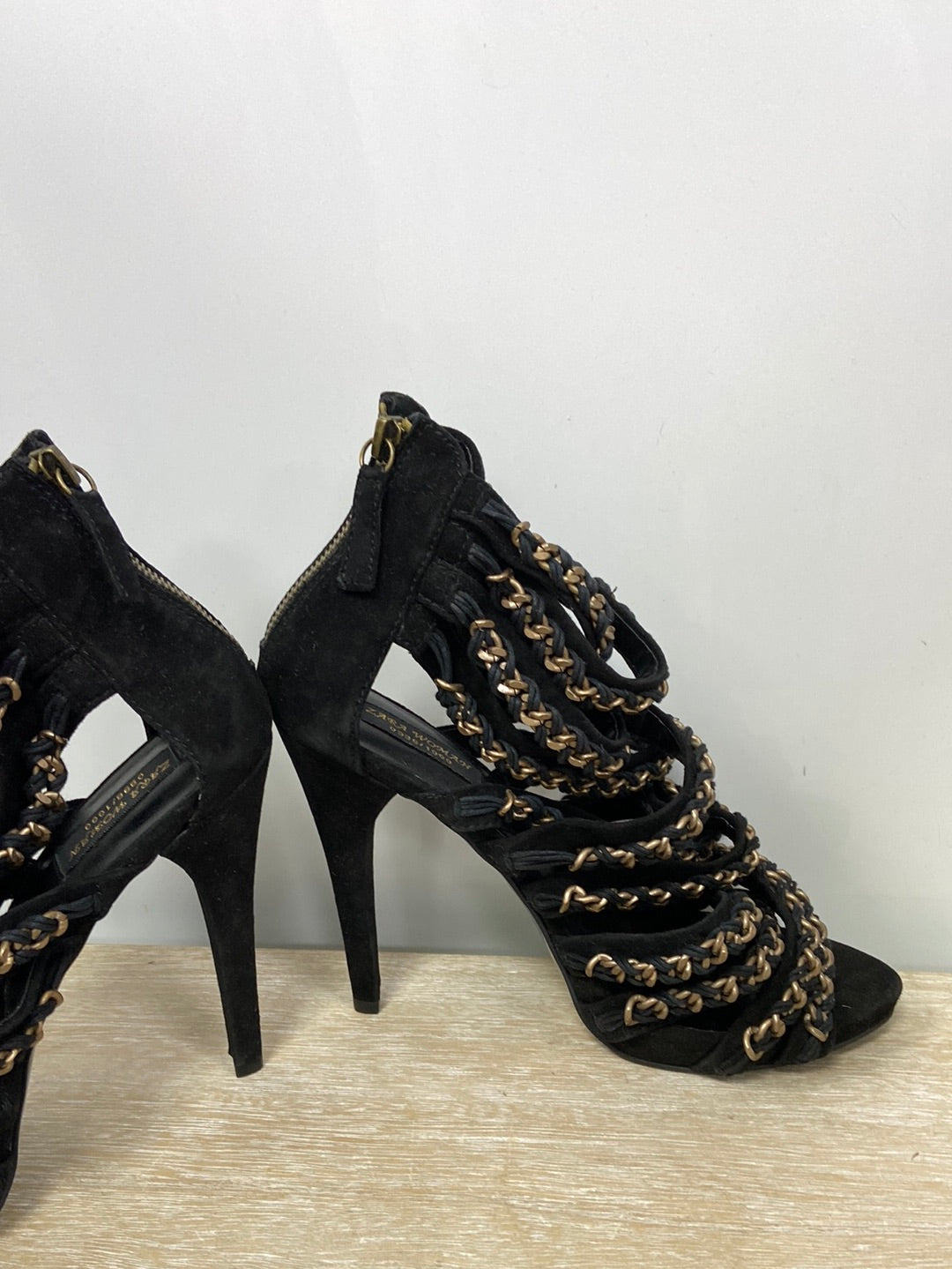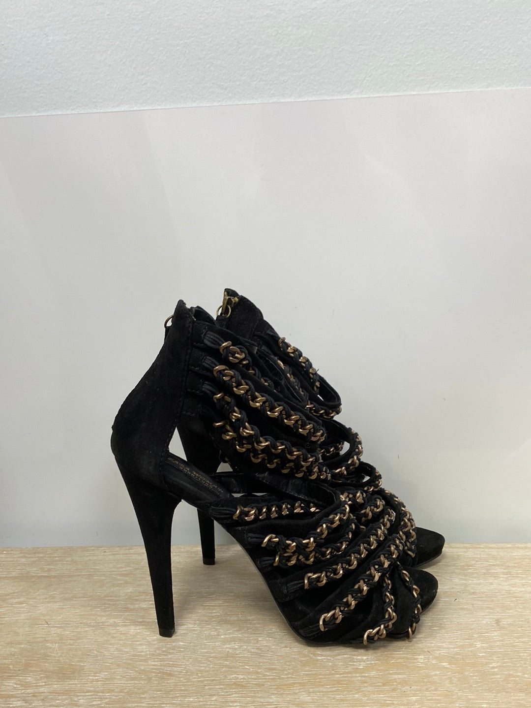 sandalia negra cadena. Tacón 13 cm