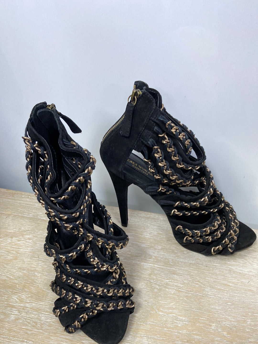 ZARA.Sandalia cuerdas botín tacón T.41