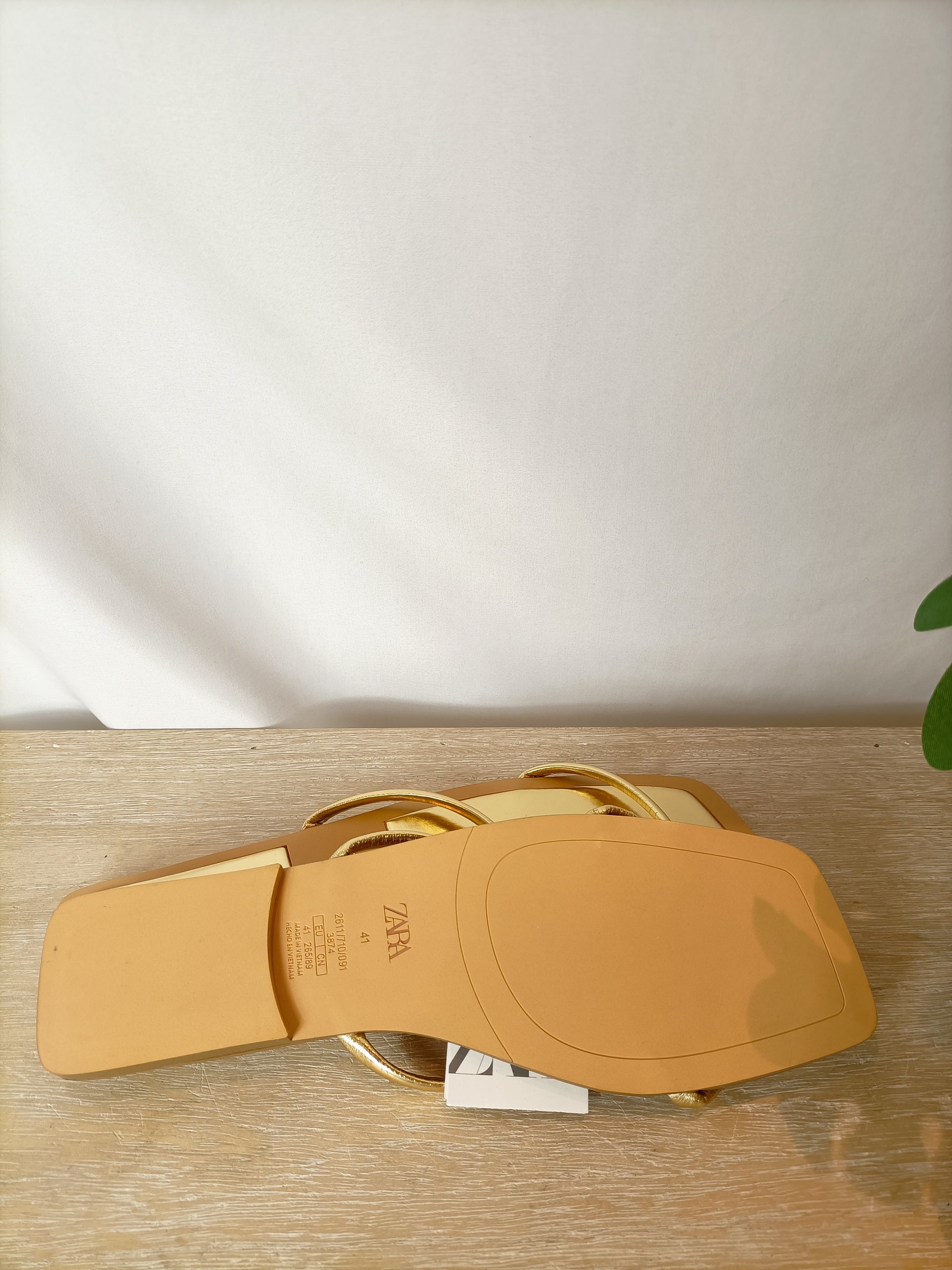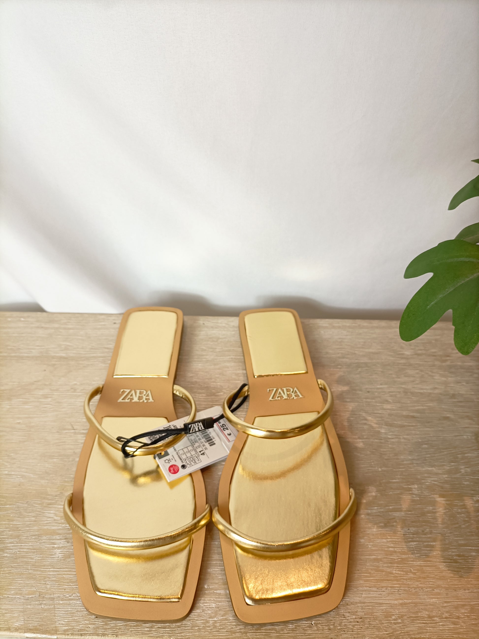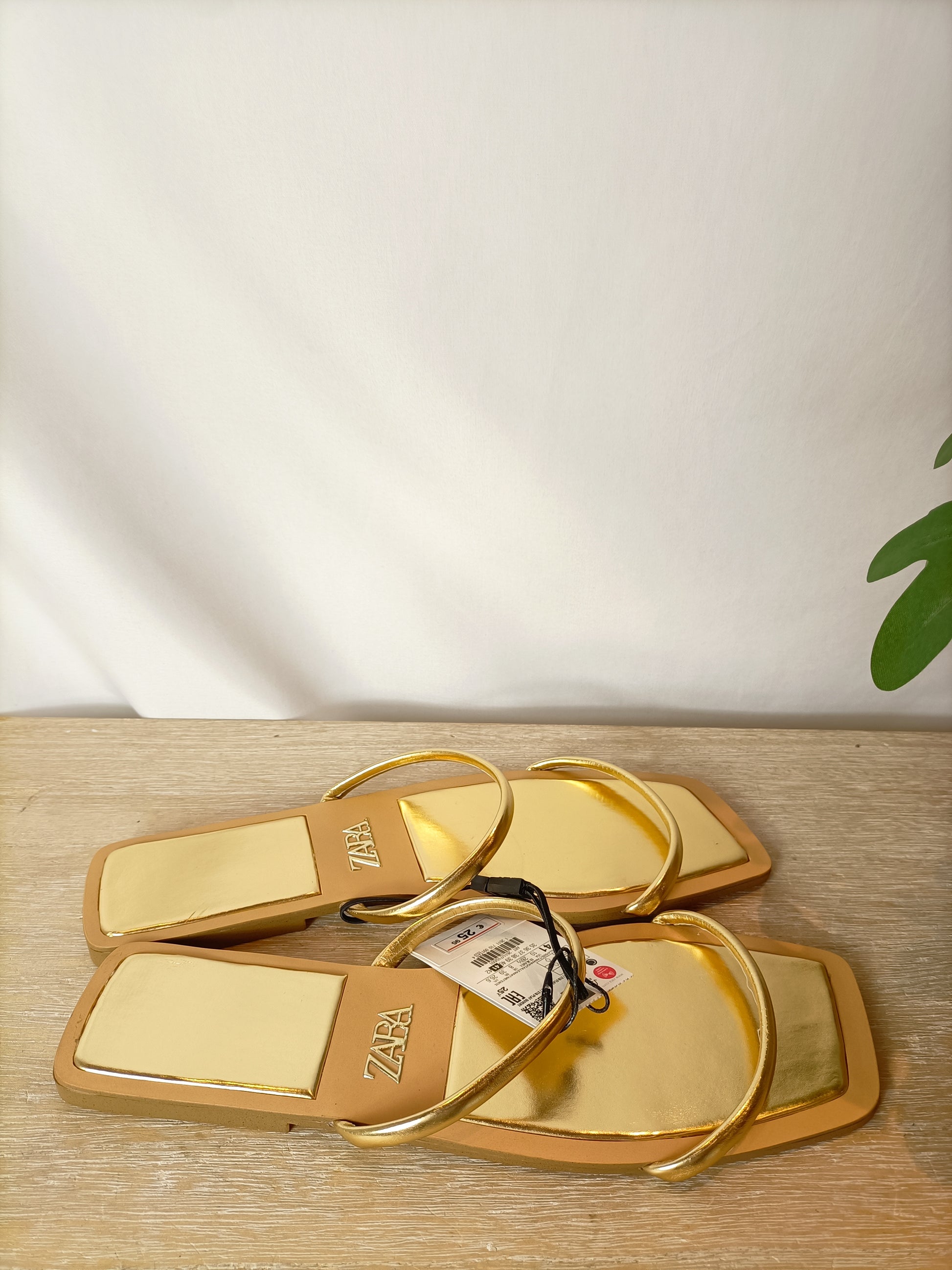 NUEVO CON ETIQUETA. Sandalia plana dorada.