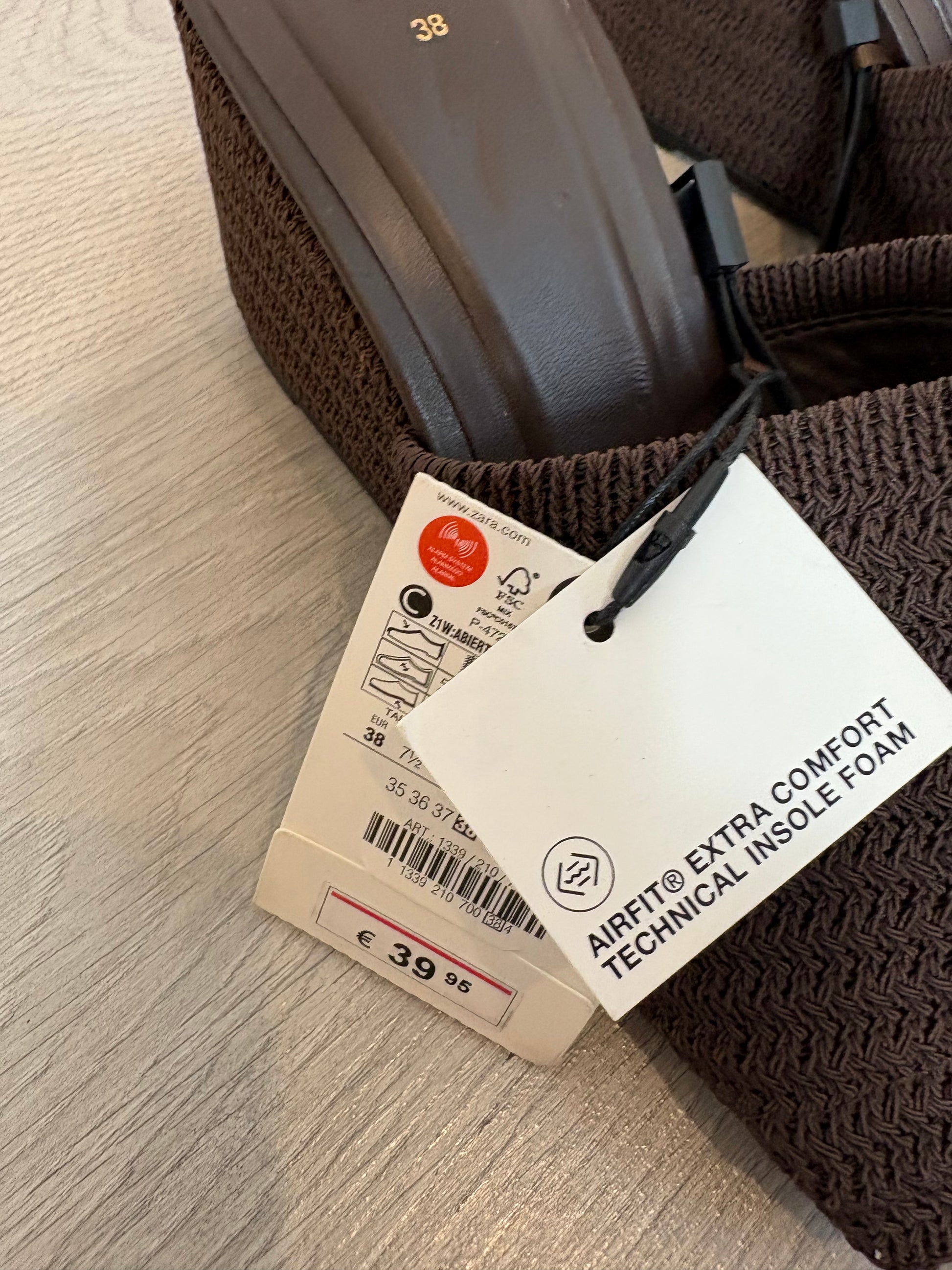 NUEVO CON ETIQUETA. Sandalia marrón chocolate textura. Alto cuña 8 cm
