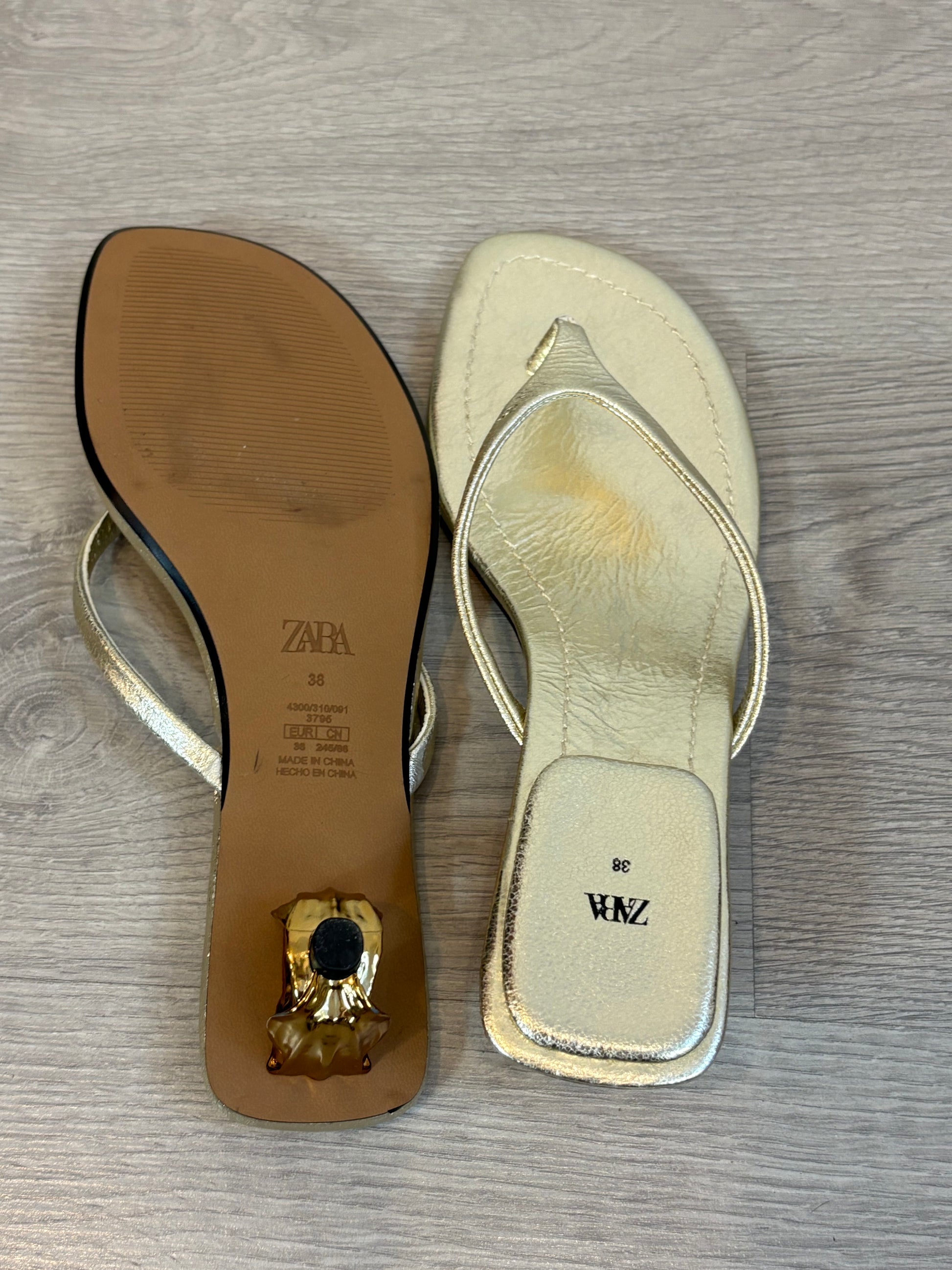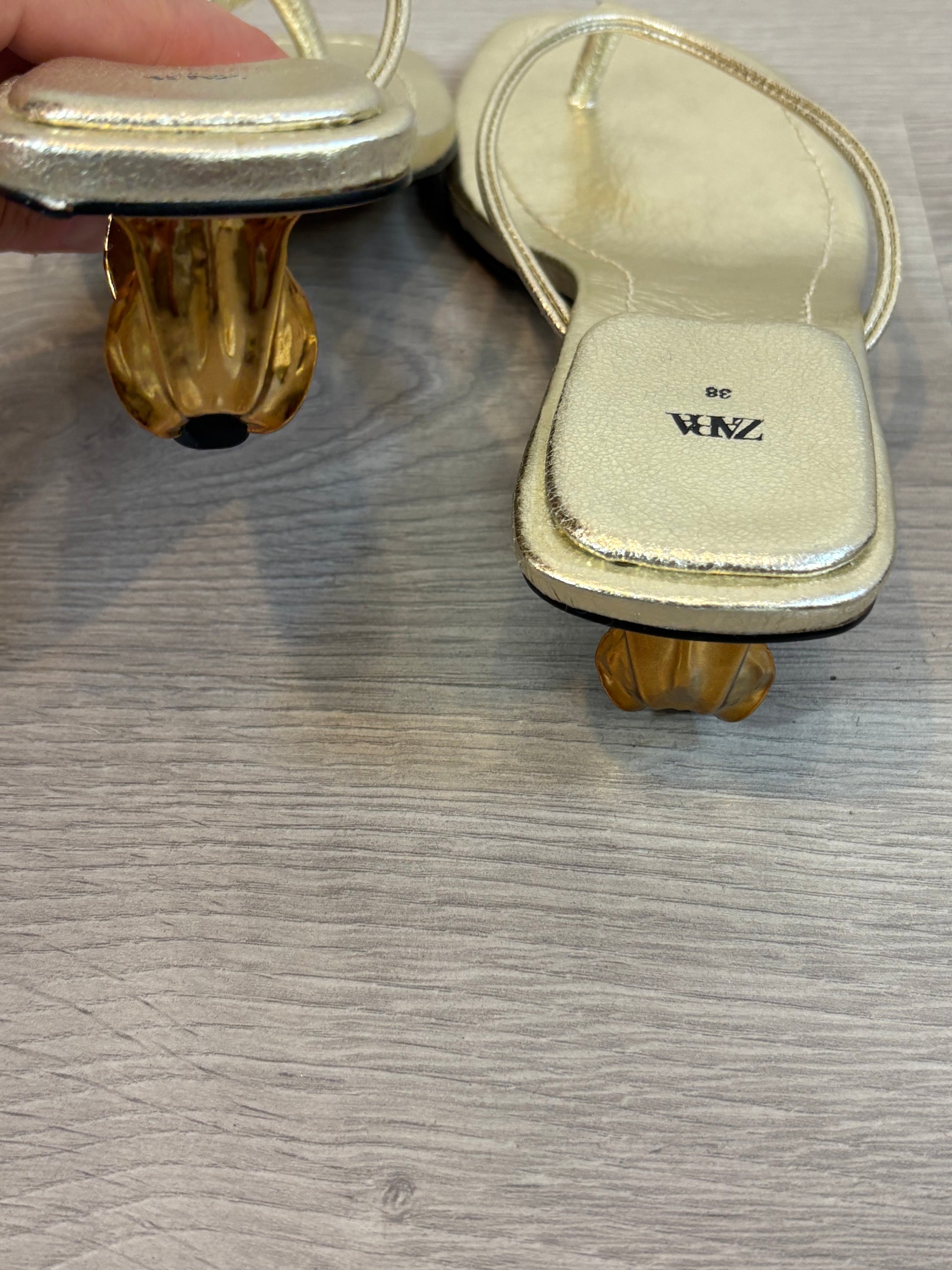 ZARA. Sandalia plateada detalle tacón