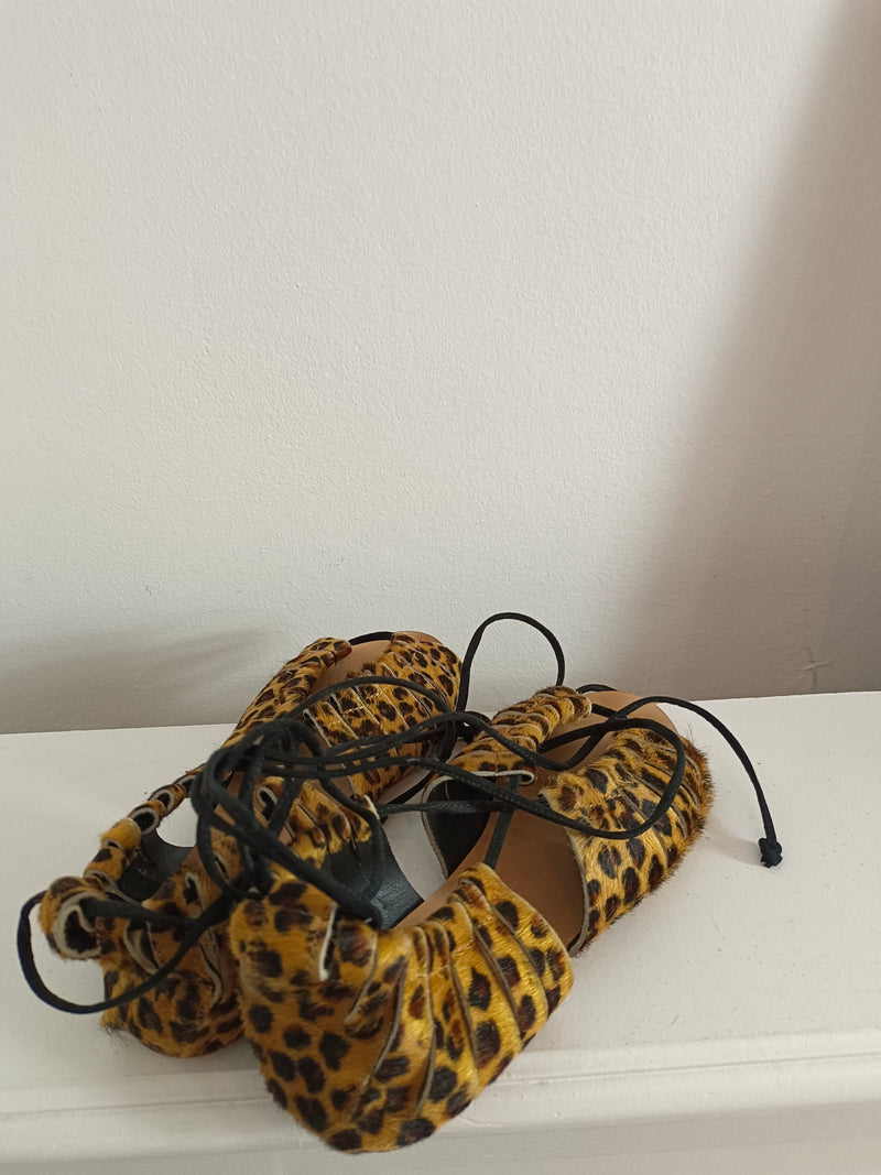 sandalia plana animal print de pelito con cuerda.