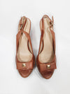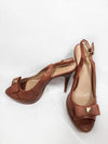 Zapatos de tacón de cuero marrón con lazada y tacón fino. Tacón 13 cm, plataforma 3 cm