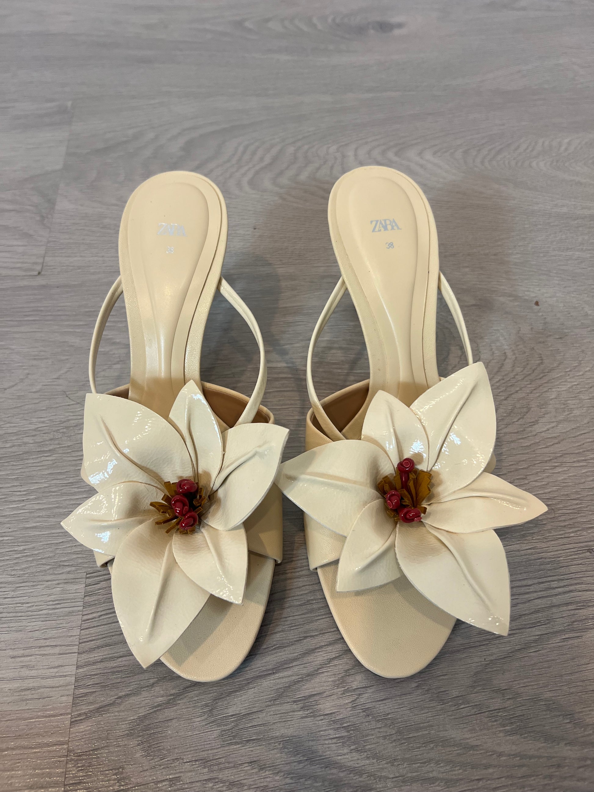 ZARA. Sandalia beige flor. T 38