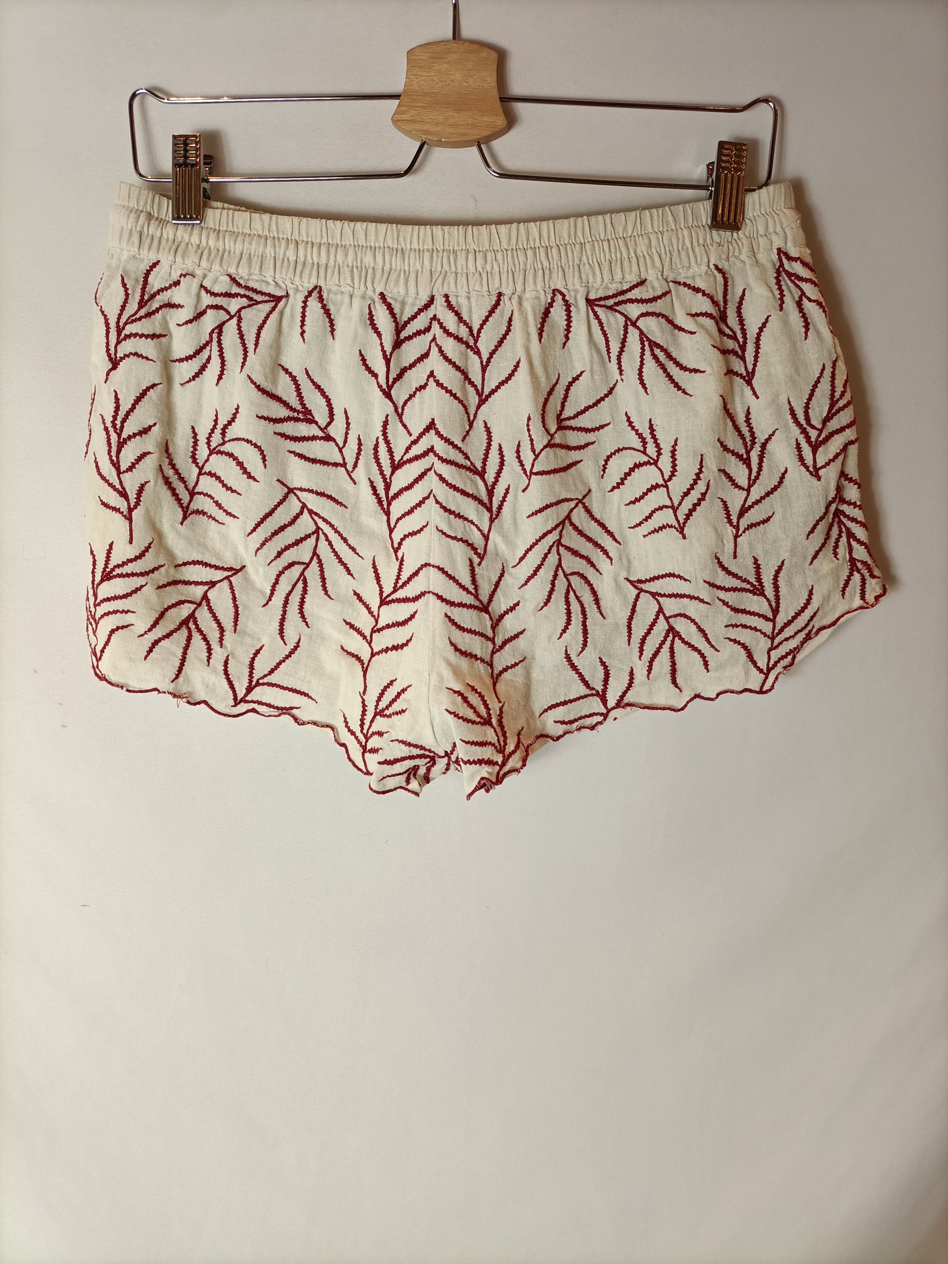 Pantalón corto fluido con detalles bordados. cintura elástica.