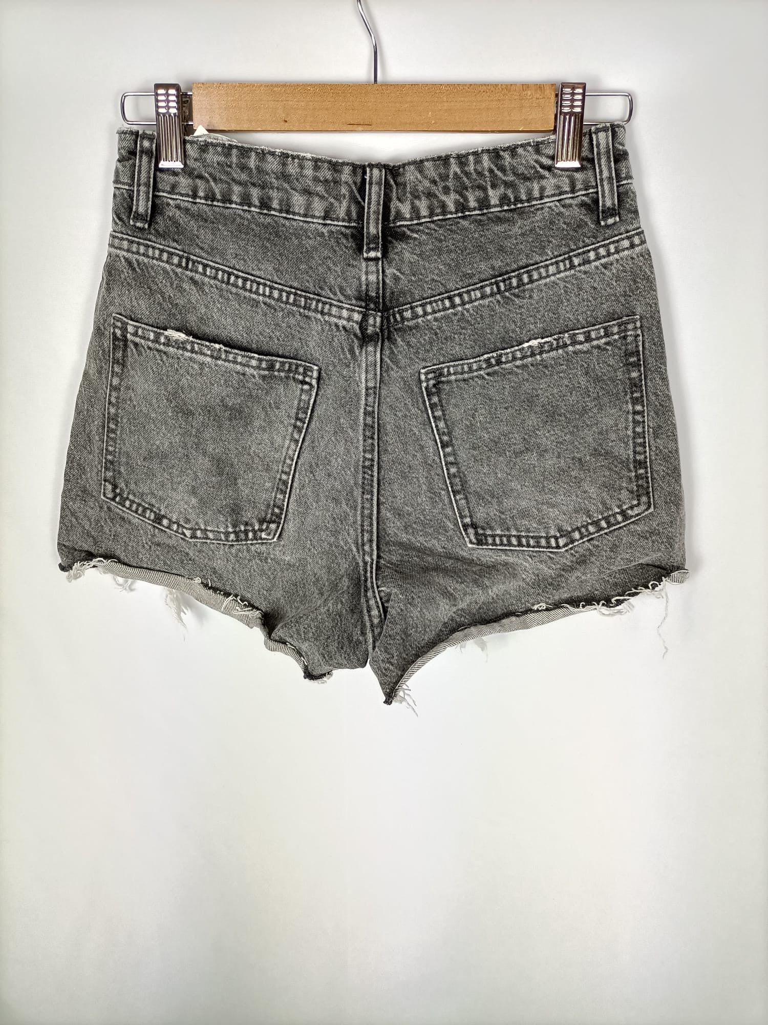 Zara. 34. Shorts gris efecto desgastado con rotos. Tejido denim. No elástico. De sisa a sisa 34 cm largo 33 cm