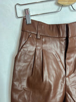 Pantalón corto marrón polipiel con pinzas.