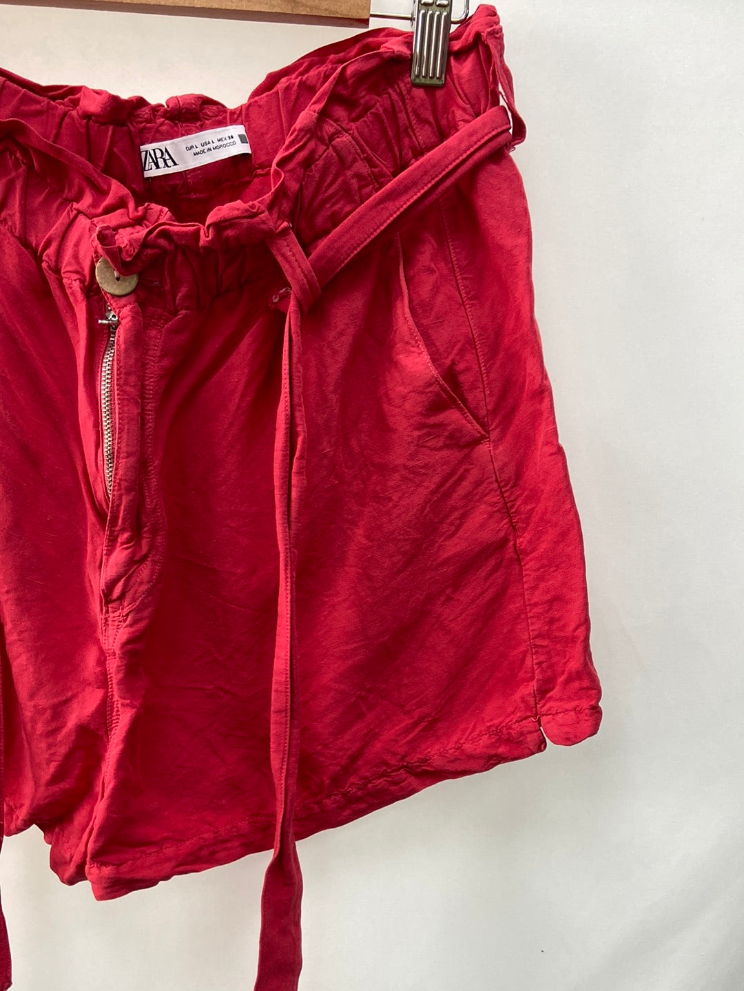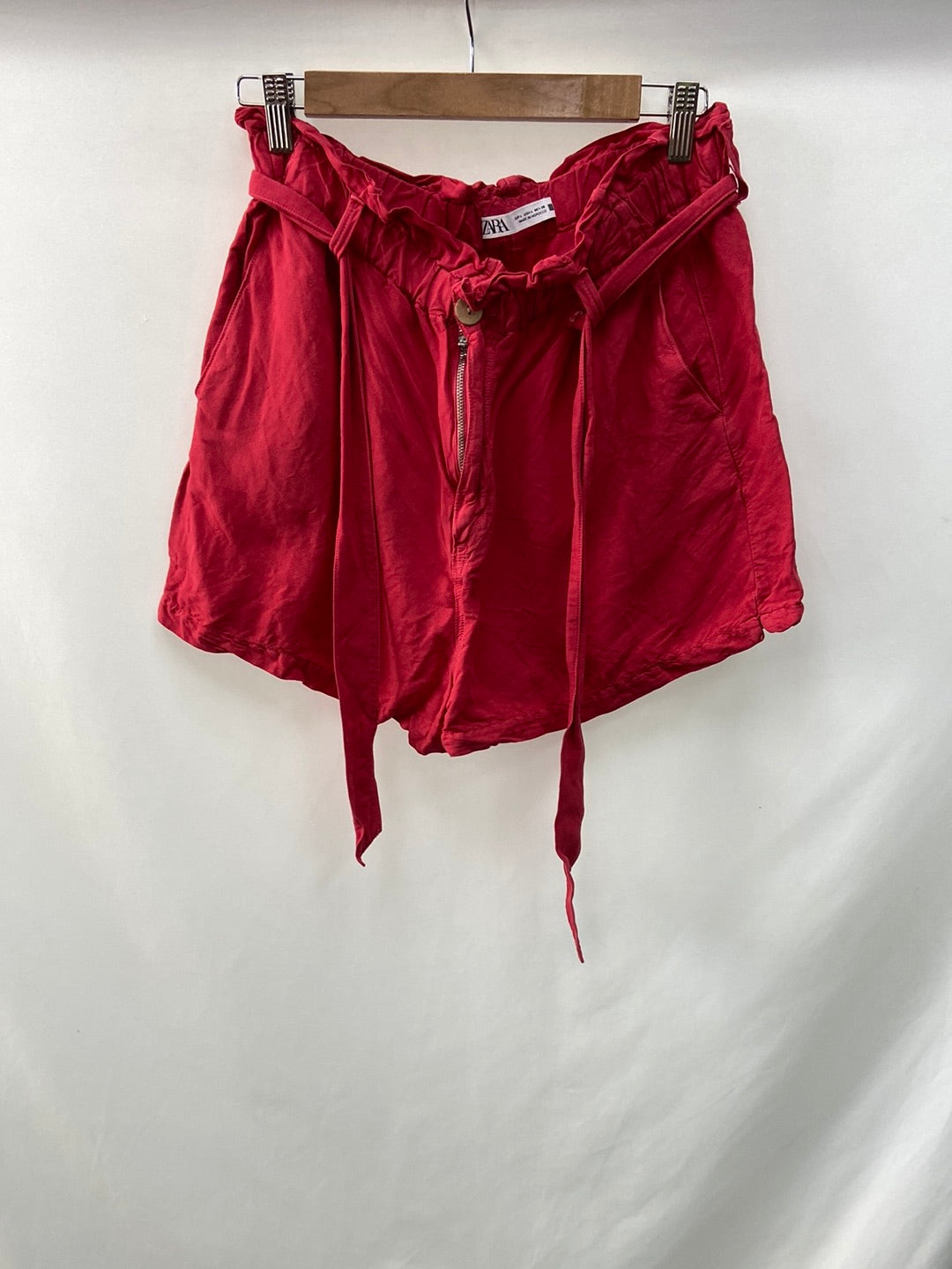Shorts cintura elástica con cinturón de Lino rosa oscuro .