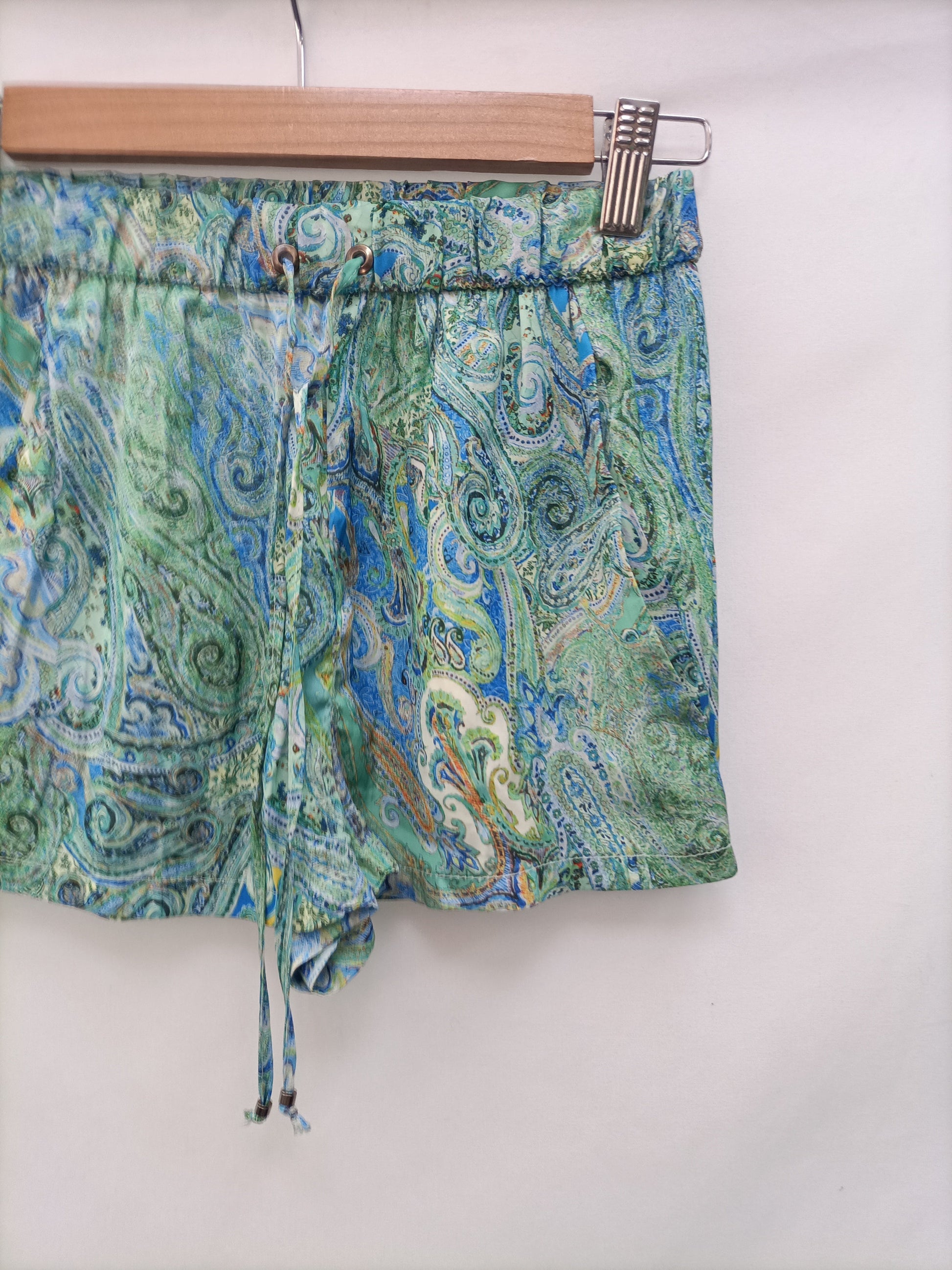Shorts fluidos con estampado de amebas. Cintura elástica. Largo 28 cm