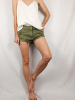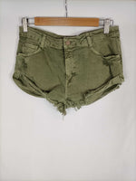 Zara. 38. Shorts. Muy cortito verde. Tejido denim. No elástico. Cintura 41 cm largo 29 cm