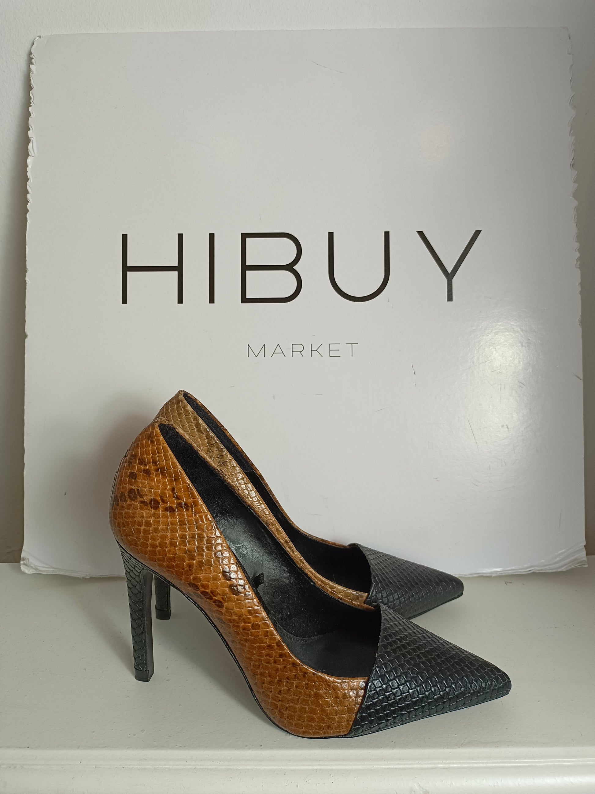 ZARA. Stiletos tacón print T.36