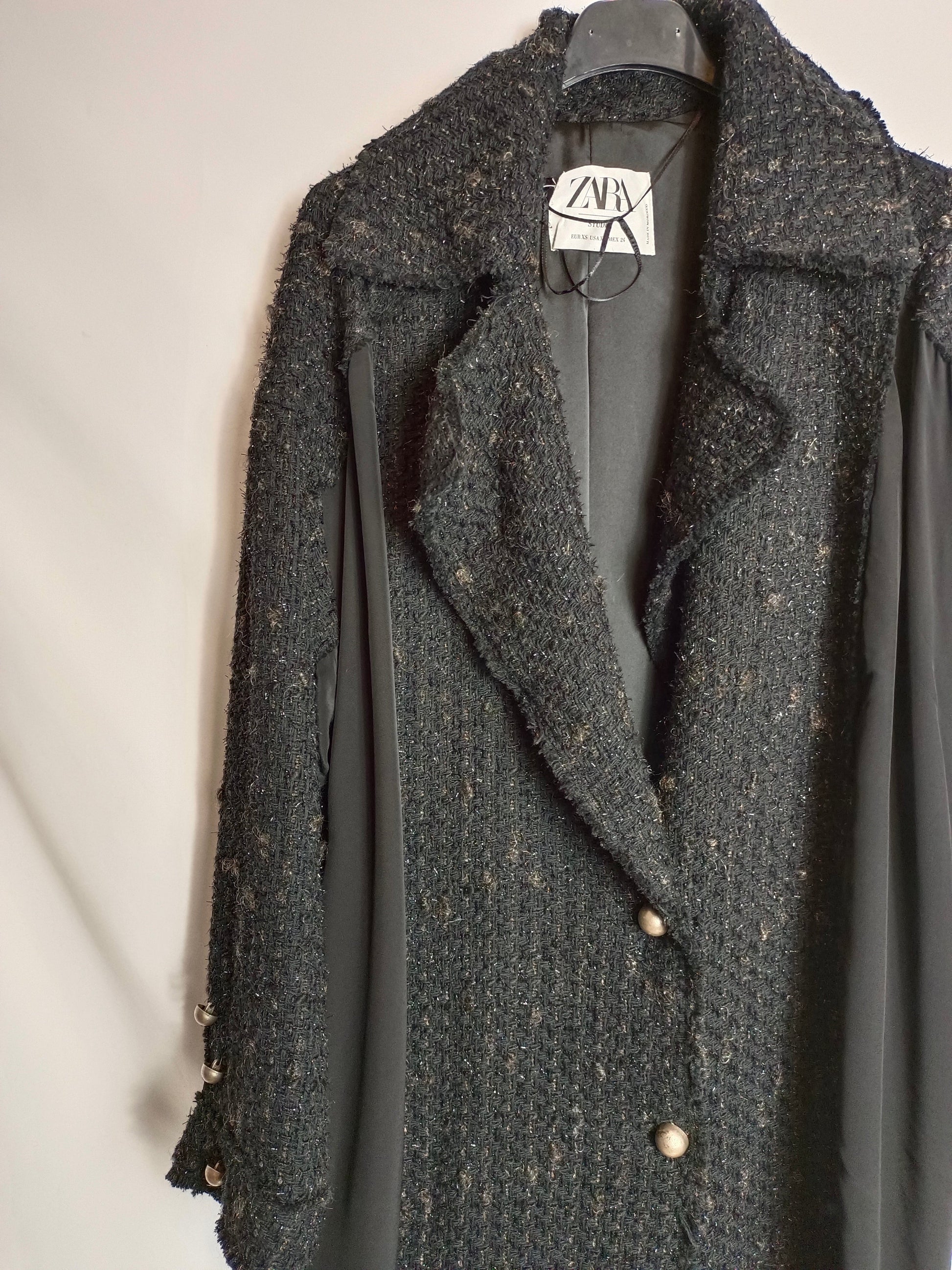 ZARA STUDIO. Abrigo tweed negro T.xs
