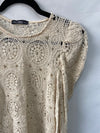 Top beige de croché con las mangas ligeramente abullonadas en la parte de los hombros. largo 54 cm