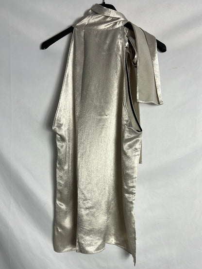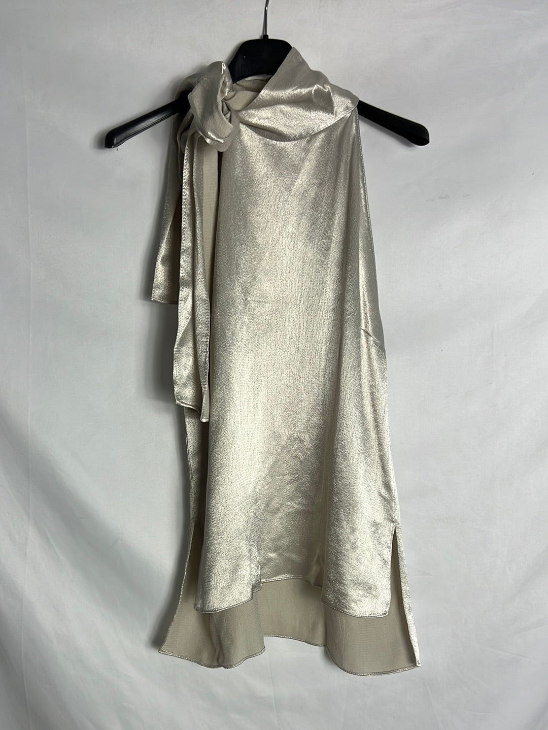 NUEVO CON ETIQUETA. top beige escote halter con lazada lateral en el cuello