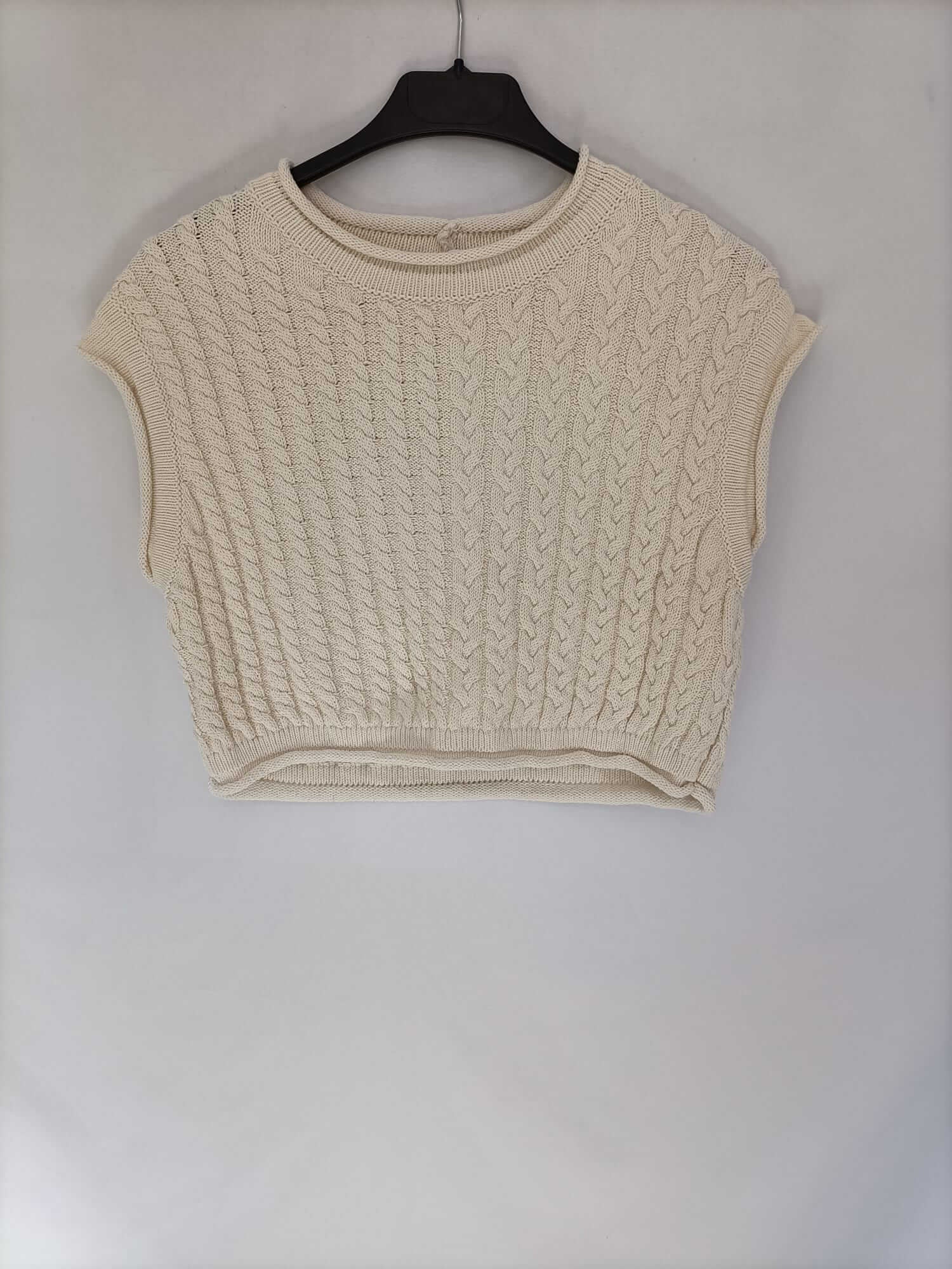 Zara. S. Top de punto cortito beige con ochos. Largo 40 cm