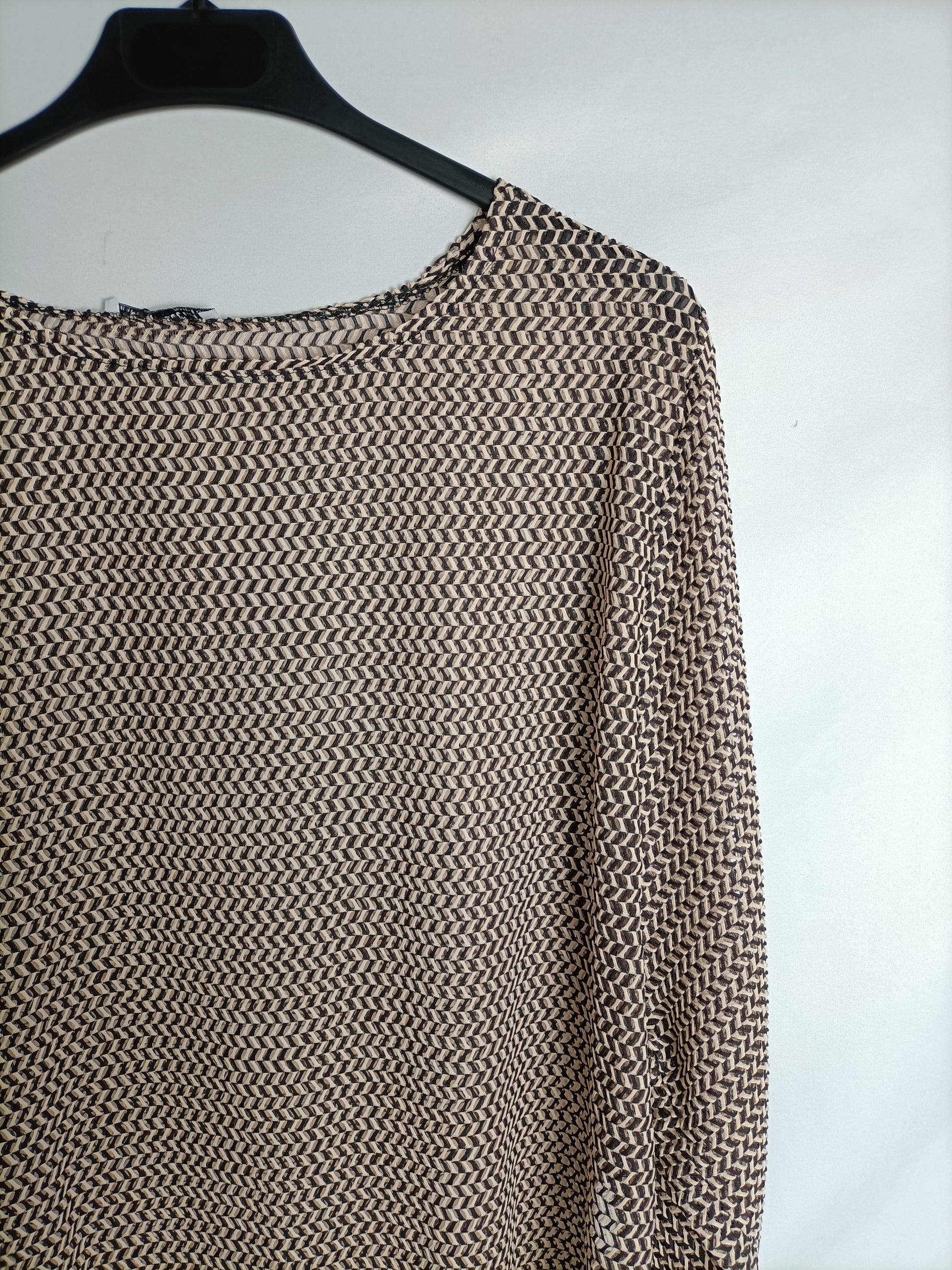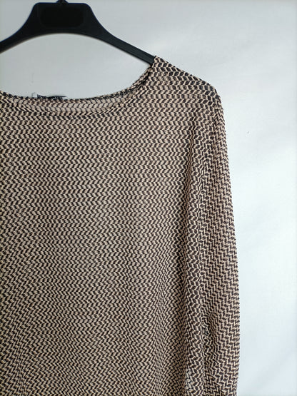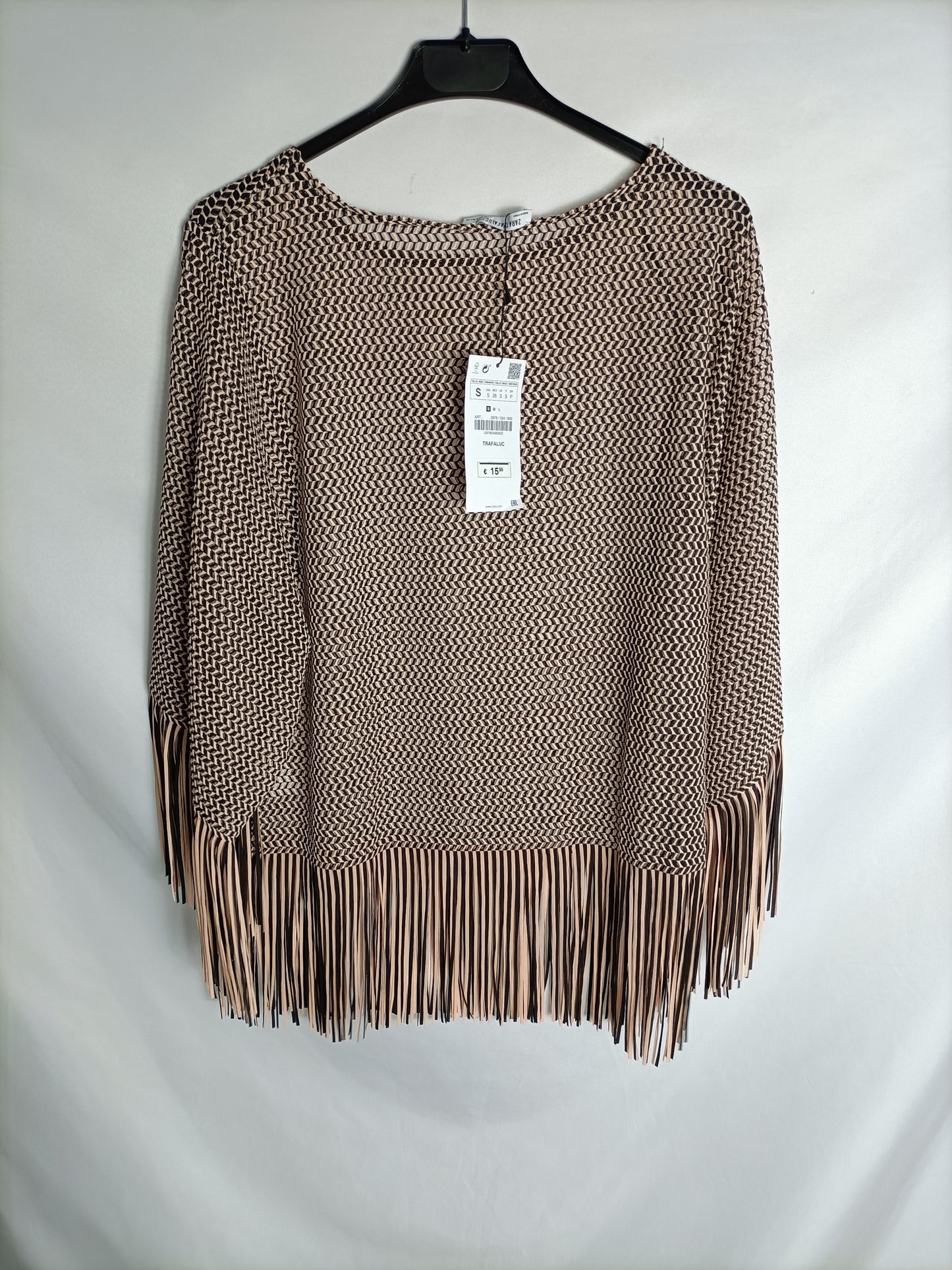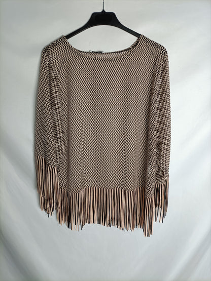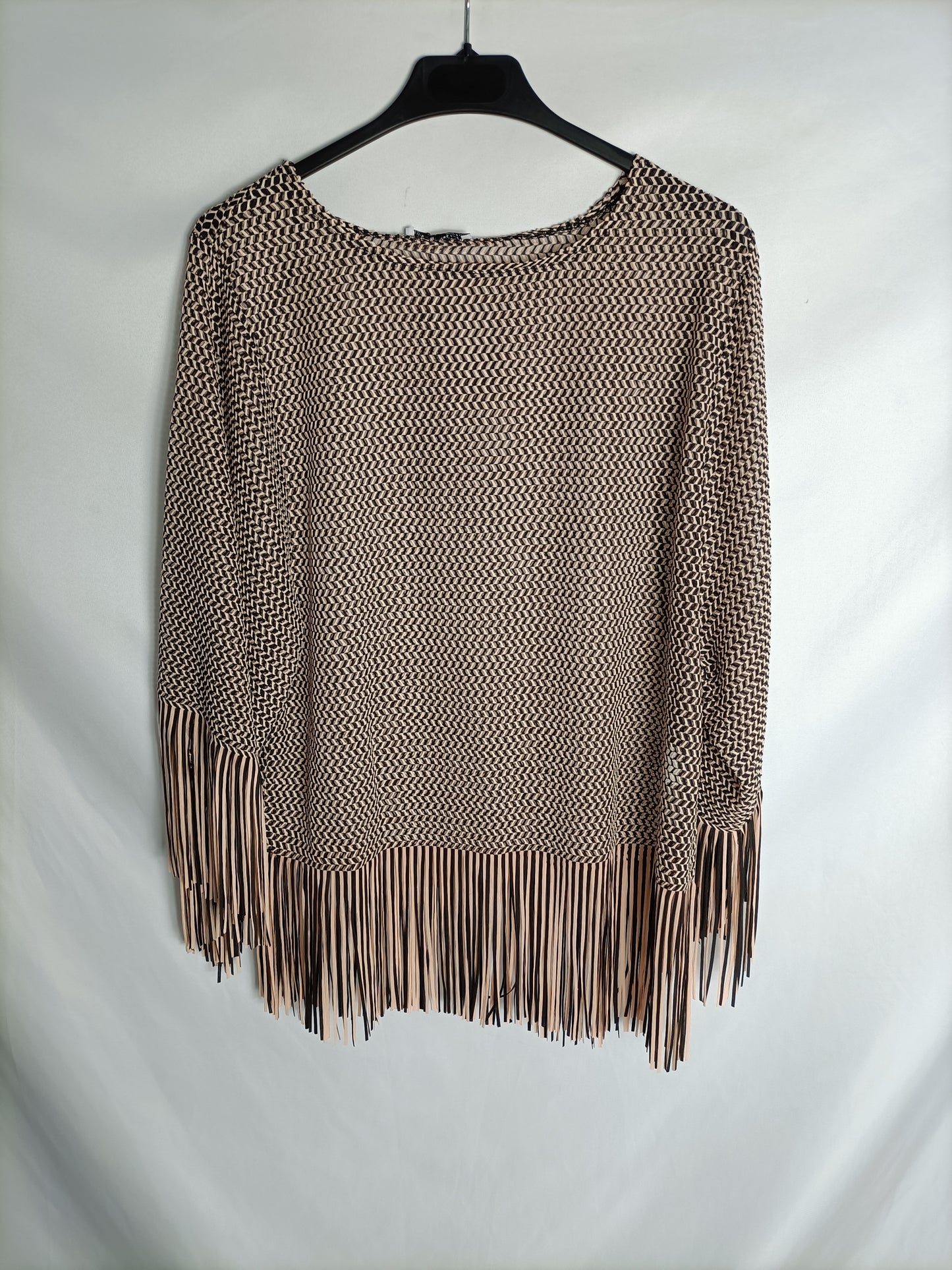 ZARA. Top beige y negro flecos T.s