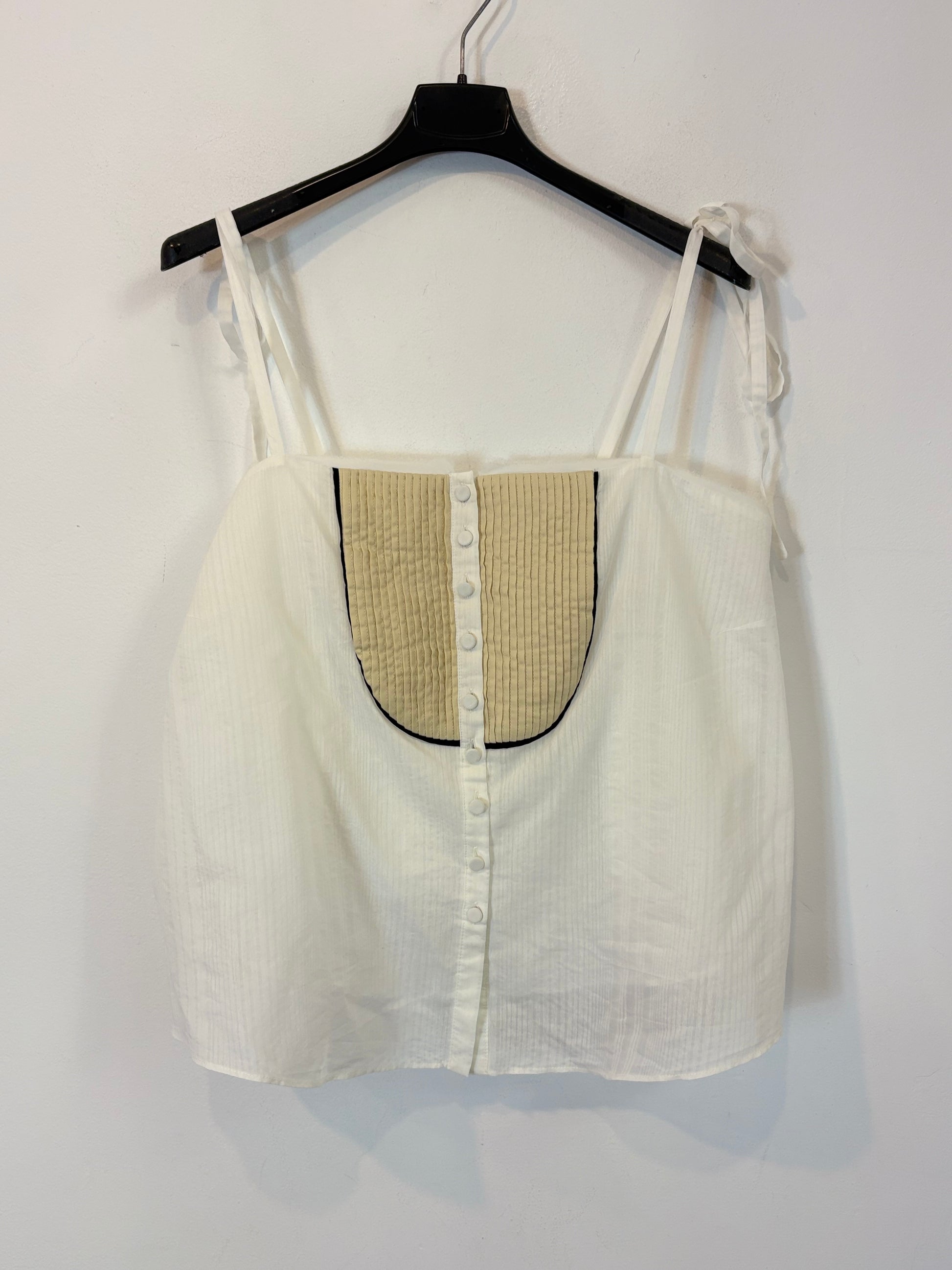 ZARA. Top blanco detalle escote. T XL