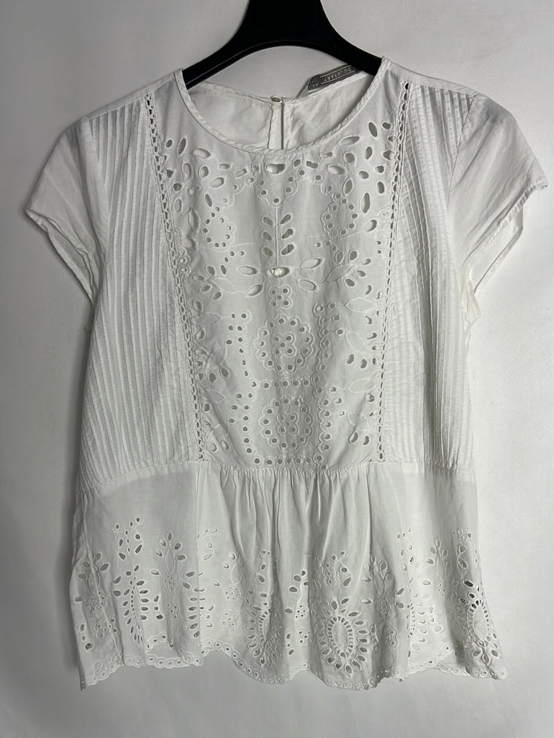 ZARA. Top blanco troquelado. T S