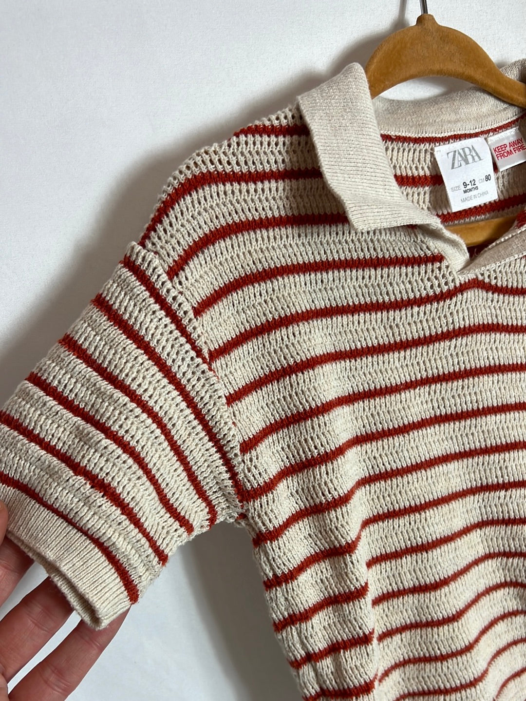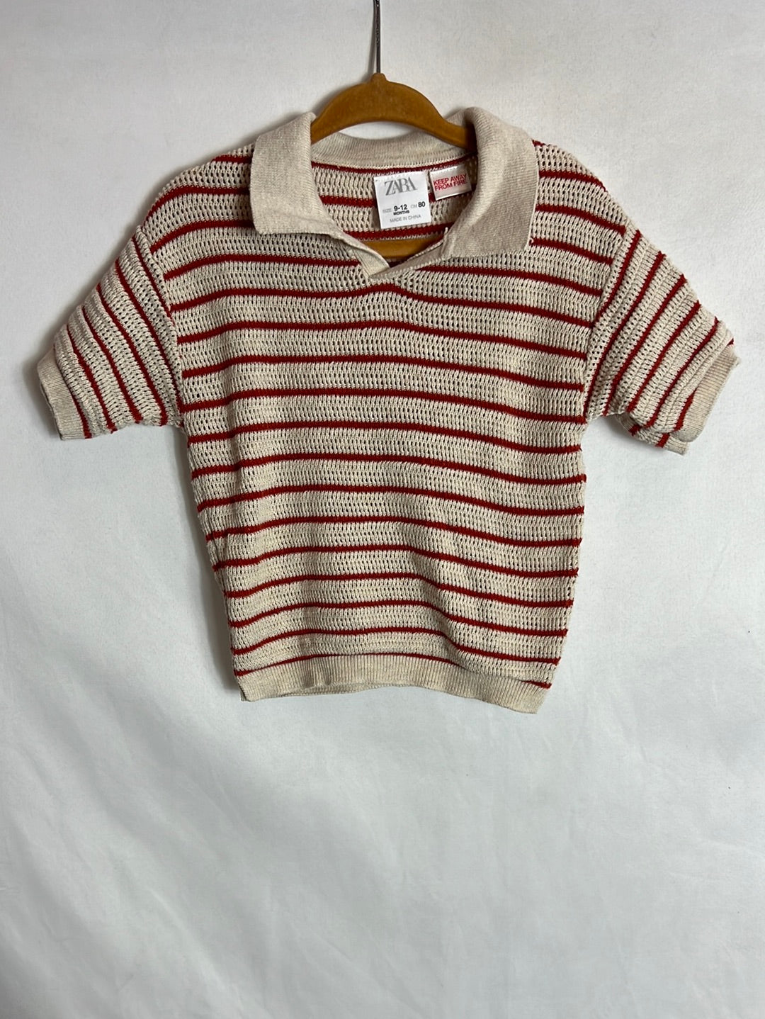 ZARA. Top calado rayas estilo polo. T 9-12 meses