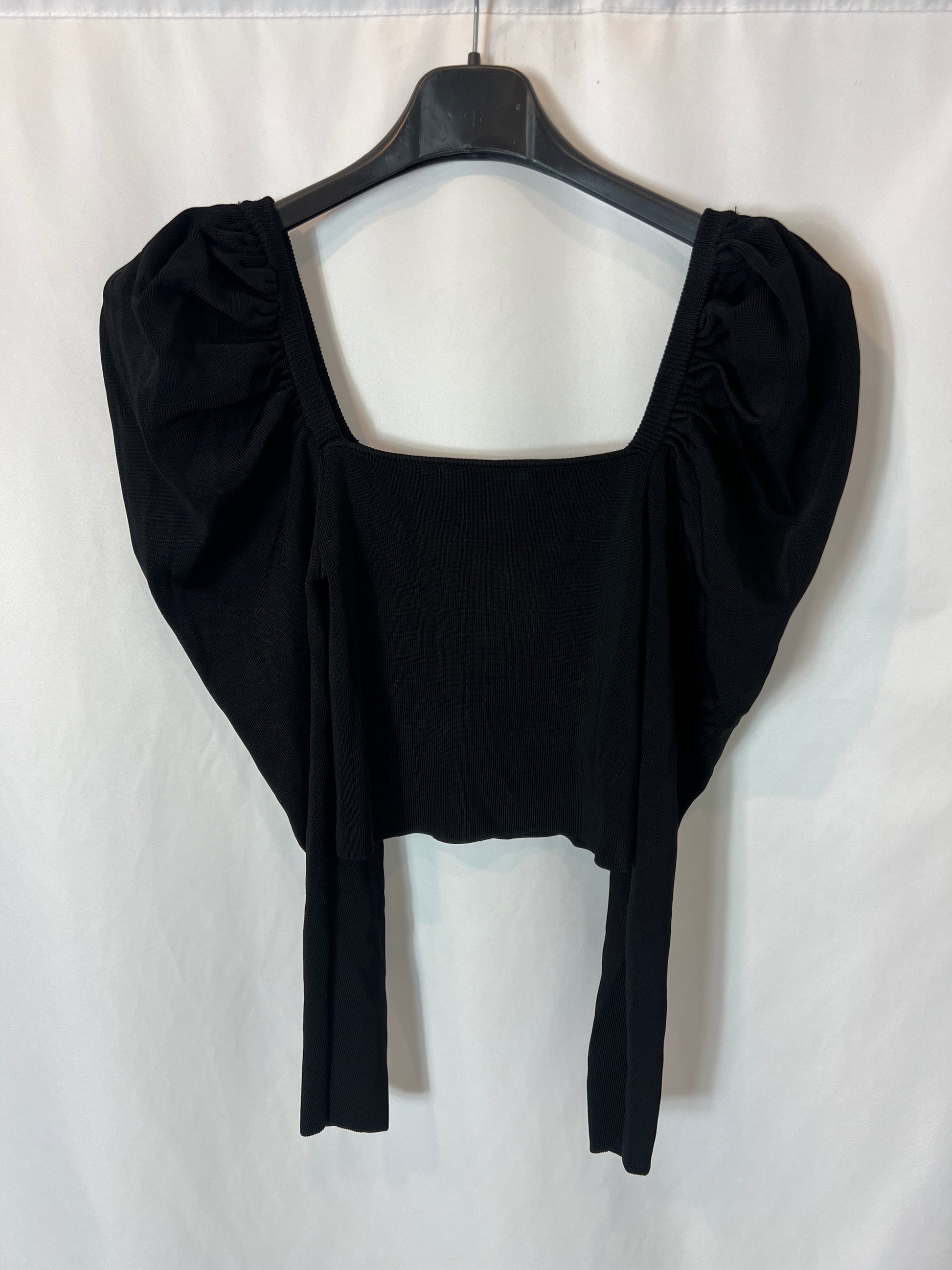 Top negro canalé elástico manga farol