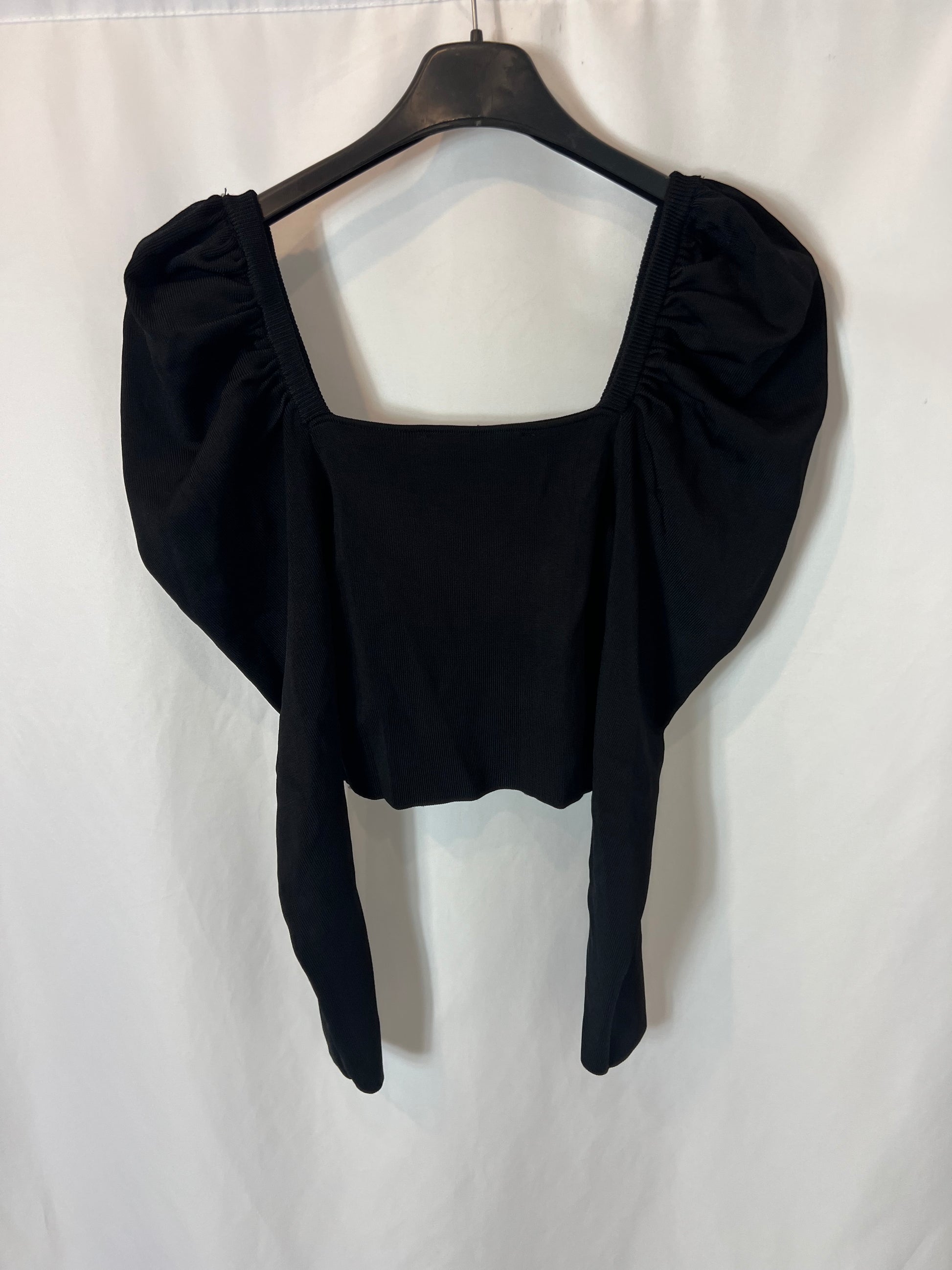 ZARA. Top canalé elástico manga farol. T S