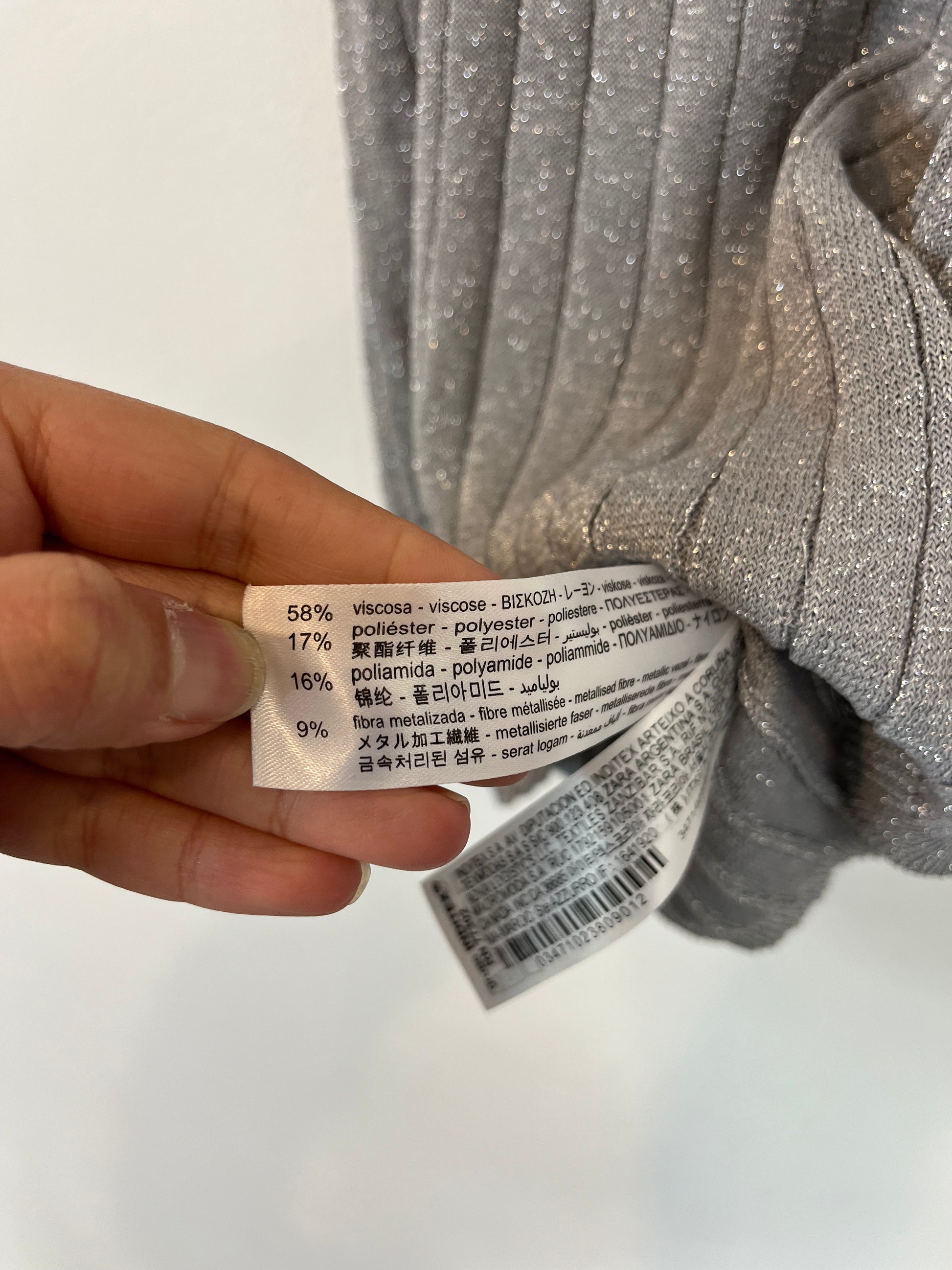 ZARA. Top canalé plateado. T.XS