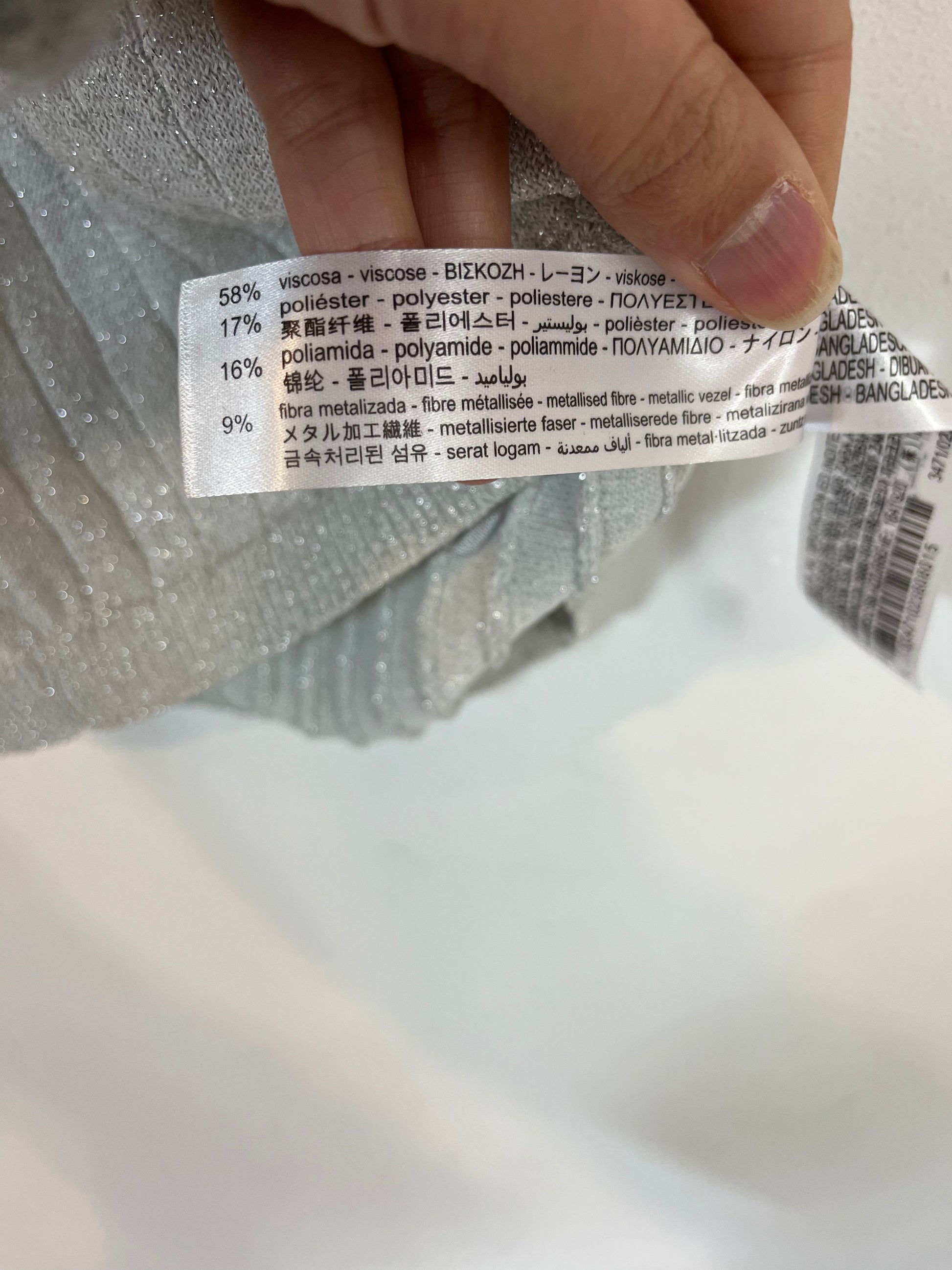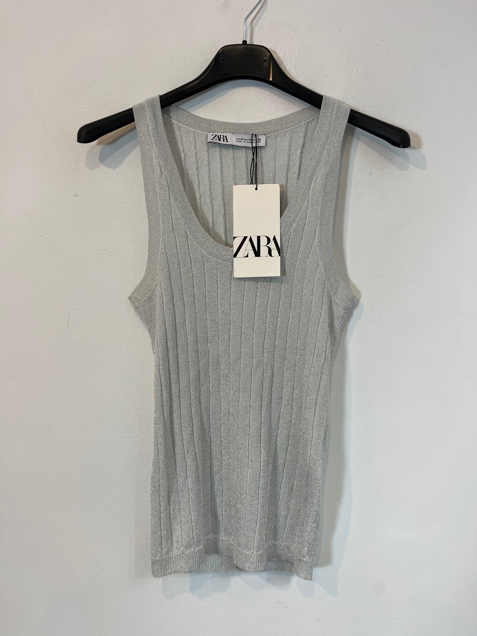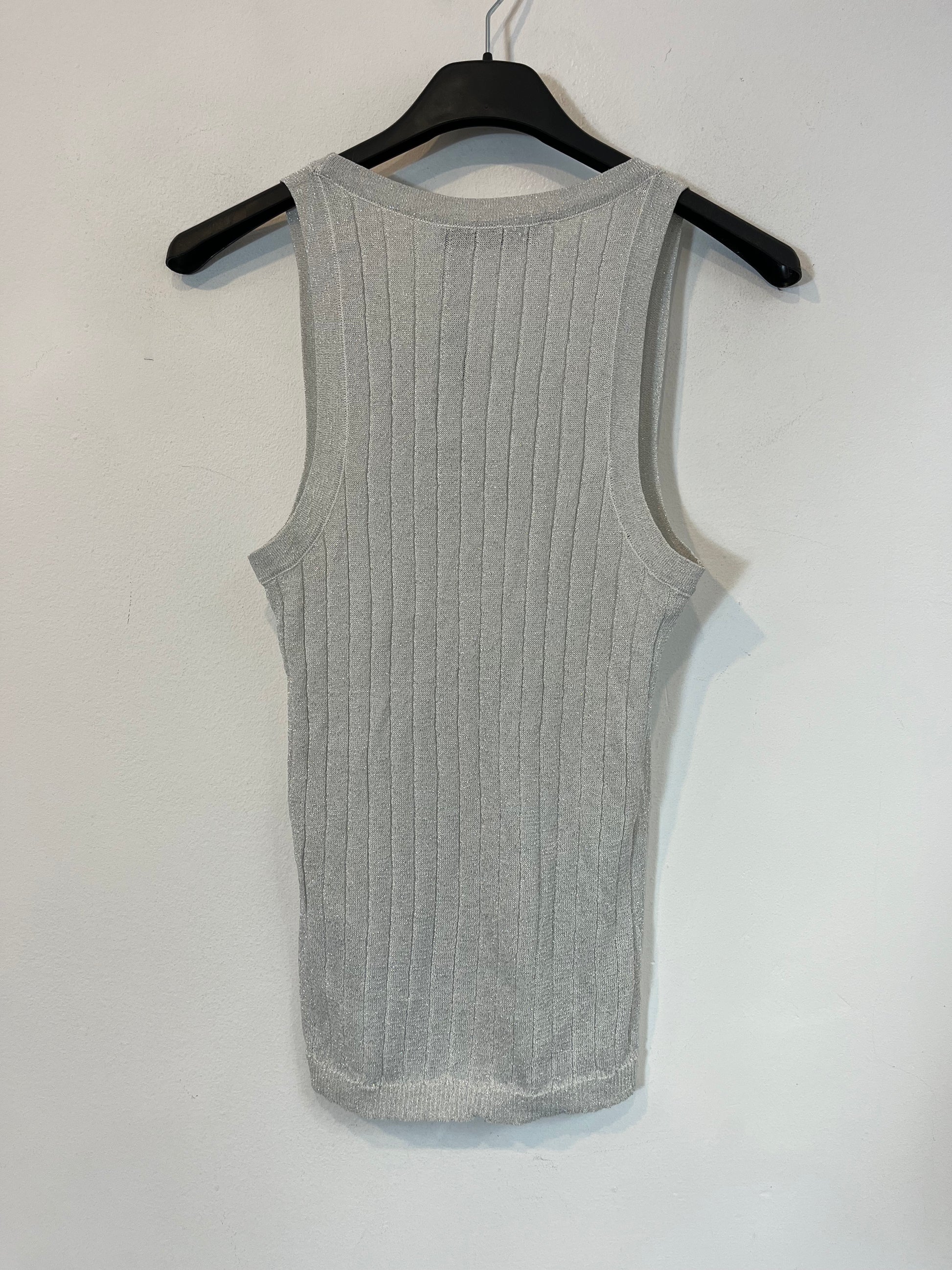 NUEVO CON ETIQUETA. Top canalé plateado con detalle hilos metálicos.